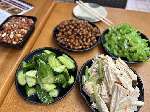 Some things I love include: Fried peanuts (available in boxes on the counter) Cold dishes: cooked peanuts, cucumber salad, tofu skin salad, bittermelon Noodles: beef tendon noodle soup or beef tendon dry noodles for summer Protein: stir fry beef dish with cilantro