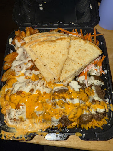 Monster Platter --- I mean, look at the picture. EVERY. PLATTER. IS. INSTAGRAM. WORTHY. They put effort in their food --- and the portion they give you will leave anyone satisfied. I had mine with the white & green sauce, with a bit of the blazin' sauce "dashed" on my platter. CHEFS KISS
