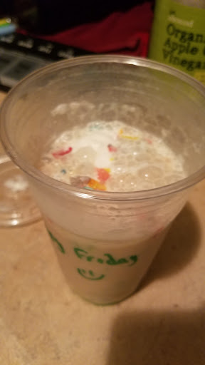 The drink: i have Fruity Pebbles. Actually tastes like Fruity Pebbles and its low in calories and filling. Im very impressed with their concept of nutrition. Cons: for the moment, if your not careful, you will walk passed it. Its literally across the street from the library.