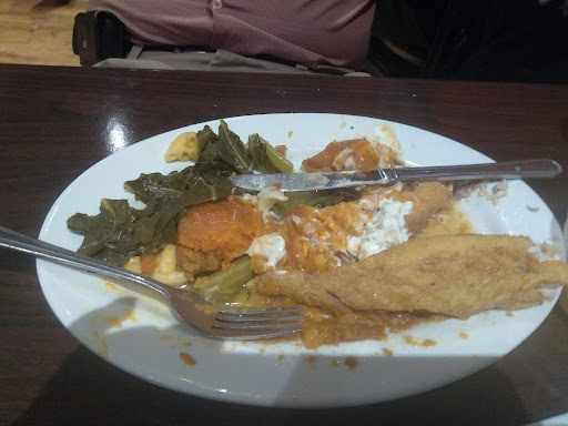 The food came out quickly and was fresh. My whiting was decently seasoned but my sides were not. My chicken wasn't seasoned enough nor was my mom's catfish. I didn't see any turkey in the greens but they weren't flavored very well. Although I prefer ACV in my greens, I will eat them without it but they have to be seasoned well and I didn't care for these. I tasted a wing and left that whole meal in the fridge, in NJ cuz my brother was sure to find it and eat it regardless. Overall, the food is bland...and that may be good for some but keep your hot sauce nearby!