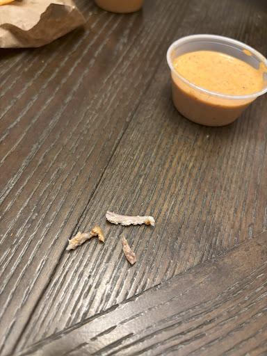 Read moreThere were 3 large bone fragments in my wife's fried chicken sandwich (see photo). The first one she found chipped her tooth. I'm honestly not sure how bones could have gotten in there because its supposed to be chicken breast.