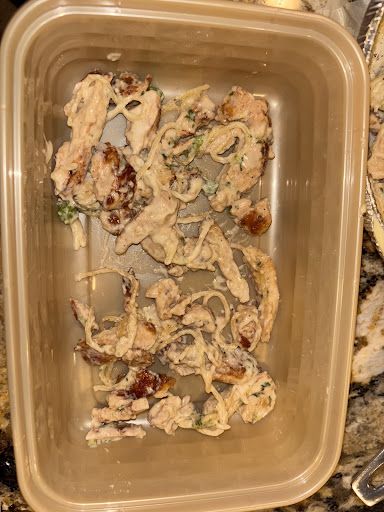 I sent them over and he said it looks like you got chicken from what we would put in a wrap. To me, it doesnât even look like something I would put in a wrap for my customers either. Didnât bother mentioning anything to me about the bread, the salad or the buttery yellow sauce on my pasta, which was definitely not an Alfredo sauce, said heâd give me a discount on my next purchase. $22 out the window, wasted time, didnât enjoy my dinner, Took a few bites of my dinner before I realized this is horrifically greasy and nothing like an Alfredo sauce, Chicken was dry and hard.