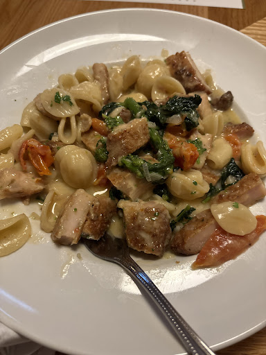 I had the Cavatelli and Meatball entree, and it was absolutely amazing. I couldn't eat enough of it. My wife is a vegan and had the Margherita Pizza with dairy free cheese. She was in love at first bite.