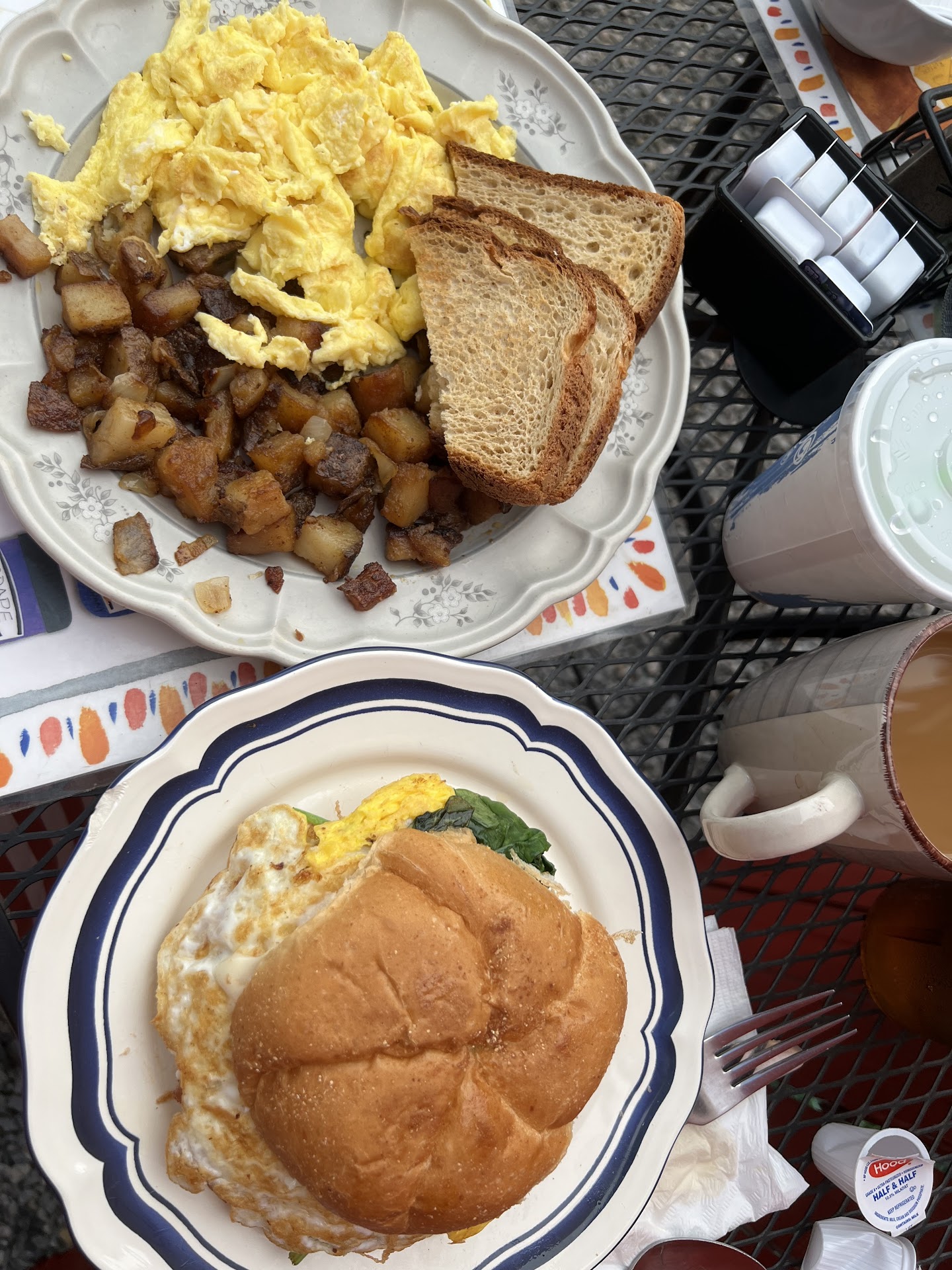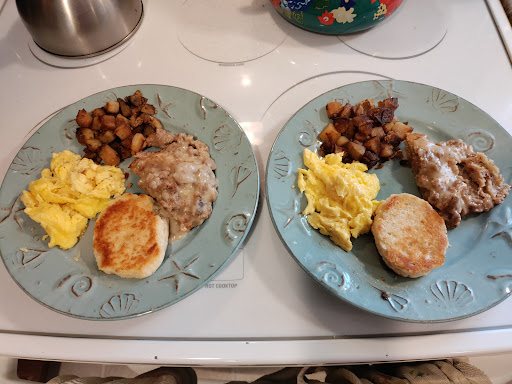 Read moreI had the Irish Benny Mess. Was absolutely delicious--spicy potatoes, sweet cornbread, salty corned beef hash topped with two beautiful poached eggs and hollandaise sauce! My companion had the Sausage Gravy biscuit with scrambled eggs and potatoes. Said it was the best he's had! Endless drinks and friendly, fast and attentive service! So what else could you possibly ask for? A cleaning service! The decor was simple but there were accumulations of dust and cobwebs and although they cover the rugs with runners, it's filthy. Honestly, makes you wonder what the kitchen looks like. However, even with that said, I'd go back in a heartbeat, the food and service...