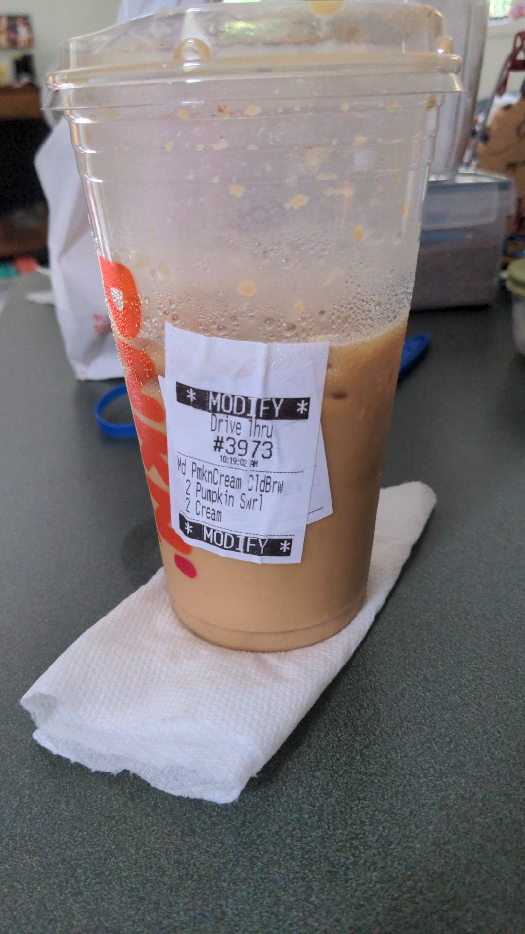 I ordered a medium pumpkin cream cold brew with only half of the sweet stuff. I added two cream and it is really good.