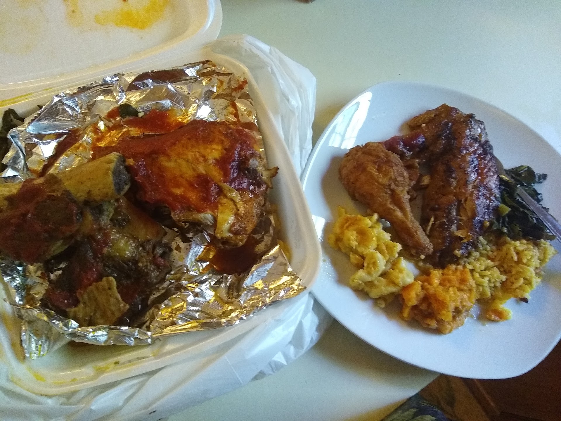 We had fried chicken, salmon, turkey wings, black eyed peas, garden rice, cornbread, special cornbread, candied yams, macaroni and cheese and collard greens. The guests raved about the food and many went back for second helpings.