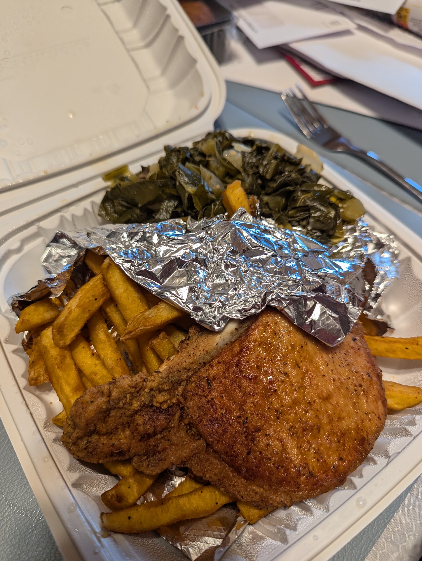 Read moreUpdate 2023; From 2 stars to one. I'm all about 2nd chances. I figured since my last visit. They couldn't go anywhere but up however still a disappointment unfortunately. I won't be patronizing this establishment again.Macaroni and cheese tasteslike macaroni and muthe English just very mushy overcooked macaroni noodles. Turnip greens were gross they were too sweet. I don't understand why people put sugar in their vegetables.Fried. Chicken was just OK? But was not consistent throughout. There was one piece that was seasoned well abd one piece that was not seasoned at all.