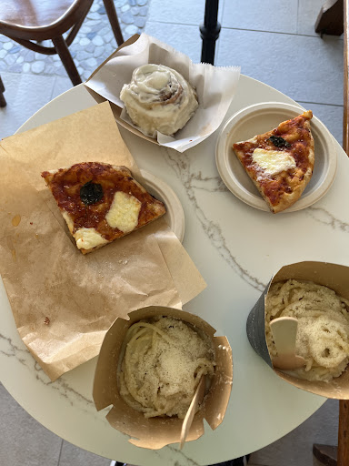 I think this is a relatively new place, and they havenât quite found their footing. In the seating area, theyâve got Spotify running on what appears to be a free plan, so you get a pretty nice mix of music interrupted by very loud ads for diet supplements? I donât particularly appreciate being prompted to give a 15% tip when thereâs no actual table service. Just put a tip jar next to the register if you must, and cross your fingers. I have never not left a tip when thereâs a jar. The Panini were very good, the Cacio e Pepe modestly good , a little on the salty side. Definitely $15 is way too much to pay for a little cardboard box of pasta of this quality. Super friendly staff, though, and I hope that the place...