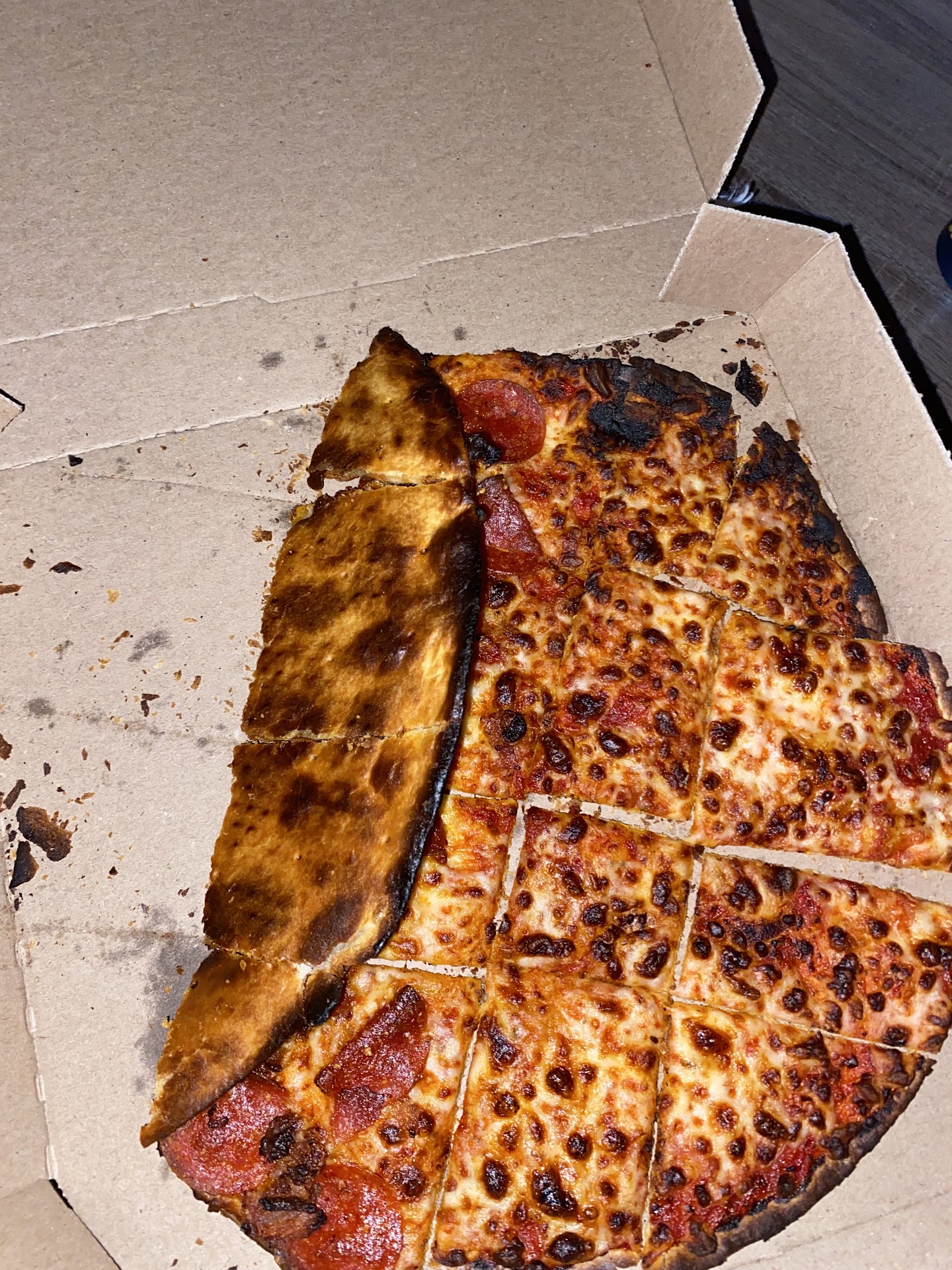 We stood there for another 20 minutes. While we were standing there the worker dropped his tongs and several pizza pans and kept using them without cleaning them. He used dirty crust tools to make the pizza. No gloves or any cleaning of anything. Absolutely disgusting and I’m not sure how they passed health inspection.