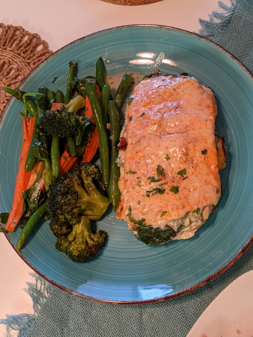 Within a few minutes of ordering, the salad that came with each of our orders were brought to the table, along with some bread and butter. The salads looked really good and were also fresh. The salad was a great start to the meal. About ten minutes or so after getting the salad, our orders came out to the table. The food came out hot and exactly as ordered. The shrimp were really good, along with the mashed potatoes and applesauce. There was plenty of food. My mom also liked what she had gotten as well. After eating, I totally forgot that it included a small dessert as well. I ended up going with the mint chocolate chip ice cream.