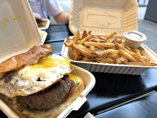 We were walking by and the smell was absolutely amazing. Checking out the menu from outside, the fact things were organic, or grass fed, or listed as all natural and I loved the fact that they use Pomace Oil, was so excited for healthy alternatives. Everyone was SUPER nice and friendly it made me even more excited. My husband ordered the chicken sandwich (we never had the G1 sauce before, so we got it on the side just in case. I ordered the Forager Burger (and have been obsessed with roasted tomatoes lately so I added that on). We were going to share the Truffle Fries. The only thing that was odd to me was on the menu it says Truffle Aioli under the description of the fries (she charged me $1 extra for it... don't put it in the description if it doesn't come with it). The chicken sandwich was 3-4 tenders on a house made bun. When he took the buns out, they were golden and beautiful, but eating it was actually pretty doughy, which was a little sad. The tenders had more of a flour taste then flavor and the chicken inside was a tad bit dry. My burger was actually pretty good, just again, lacking on seasoning/flavor. I guess I might be a little biased on that because I know there's a lot of people out there that "let the meat speak for itself", but for me, I love flavor in my meat. When we make roasted tomatoes at home, we season them, these were plain cooked. The flavor of the Cooper sharp cheese, the caramelized onions, and fully cooked mushrooms (thank goodness, other places sometimes just barely cook them, I love them soft) brought the burger up more to sort of try and bring everything together. The other thing was the burger was so juicy, the toasted white bread had so much butter on it kinda made it a little more greasy than expected, but hey, it's a burger. The fries were a little oily, but had a bunch of cheese crumbles on it, so they were nice, but again, me being biased, I like thick cut fries that are soft in the middle, light crunch on the outside - so don't take my word on those. It was nice to dip them in the Truffle aioli because the sweetness of it helped with the oil/cheese combination. I felt bad not fully enjoying it, because the man looks like he loves it and puts his all into it, which is what I expect the cook (maybe Owner?) to do. The girl at the front counter was super pleasant and wonderful as well. I'd love to come back and try the cheesesteak because it LOOKS amazing! But I'm worried that it might not be seasoned as...