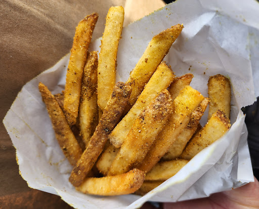 2: I'm not entirely sure how to eat the falafel hummus, I'm new to this style of food, but 1 pita bread didn't seem like enough. I think 2 pieces would have been perfect. I ended up using the fries to pick up the extra hummus, and eating some with a fork.