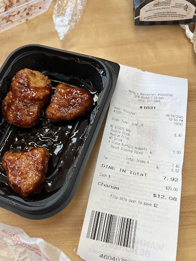 Read moreI rated this Wendy's (Russell Street/Rt 9 Hadley, MA) previously 4-star. My last several visits (over a few months) have been very aggravating at how long the drive thru wait per customer has become. After waiting in line 4 cars back and 1 behind me, then locking me in until the first car order was resolved, I then drove out of line and went to the McDonald's around the corner. I sat in the back commercial building parking lot next to the Wendy's to eat my burger and continued to watch a long drive thru line. I then went inside for only a chocolate frosty, with only 1 customer in front of me waiting for his order, and watching him getting frustrated, and no other customers inside the restaurant. I finally got my Frosty after nearly 15mins! As a senior I've been to many Wendy's over the years, but these observations are terrible, and management should consider...