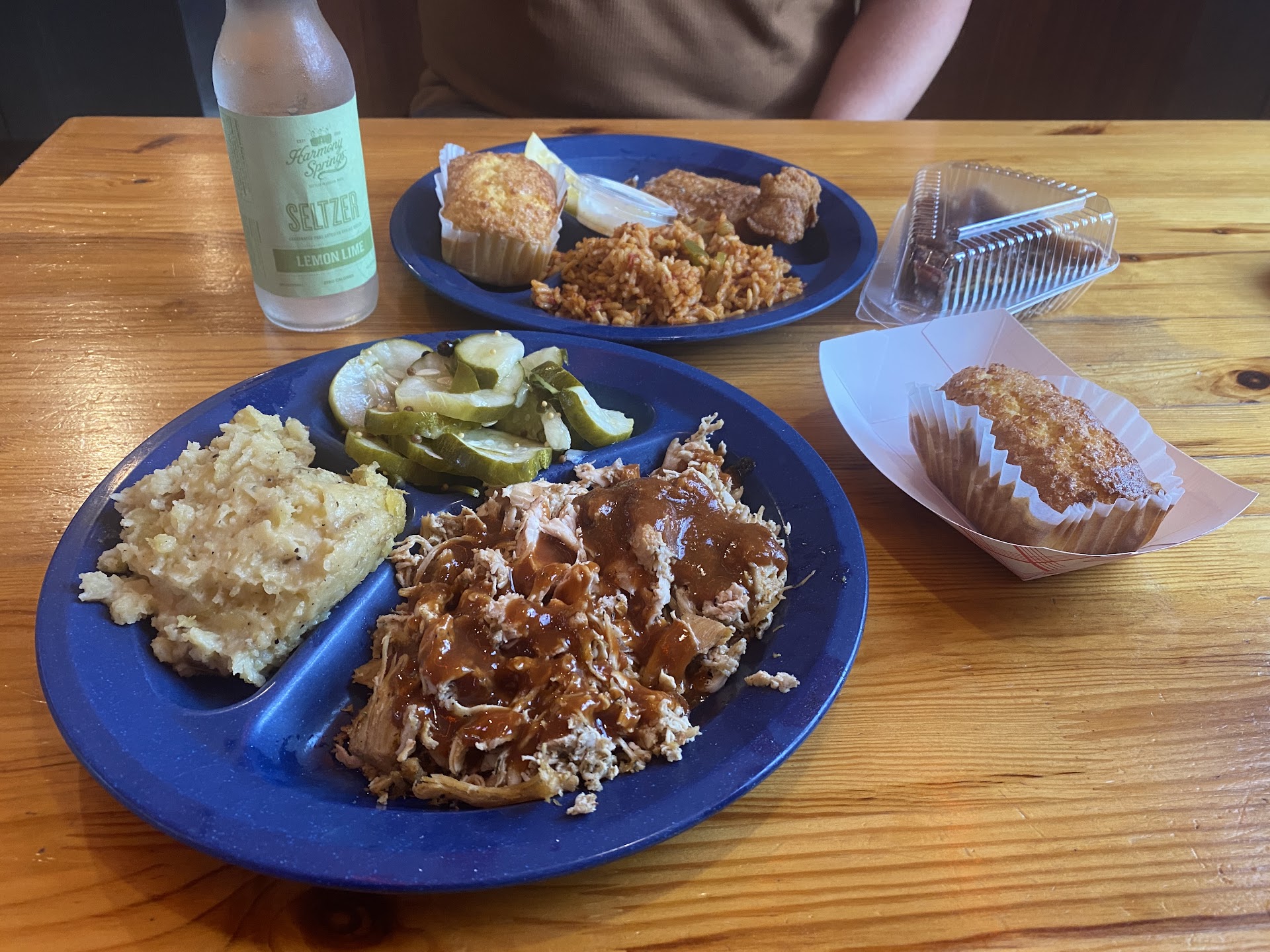 My wife and I were staying at the hotel next door on a Saturday evening on our way to Maine, so we walked over for dinner about 7pm. My wife ordered the burnt ends with slaw, and I ordered the two meat combo and picked the pulled pork, and the burnt ends. For sides I had slaw and mac & cheese.