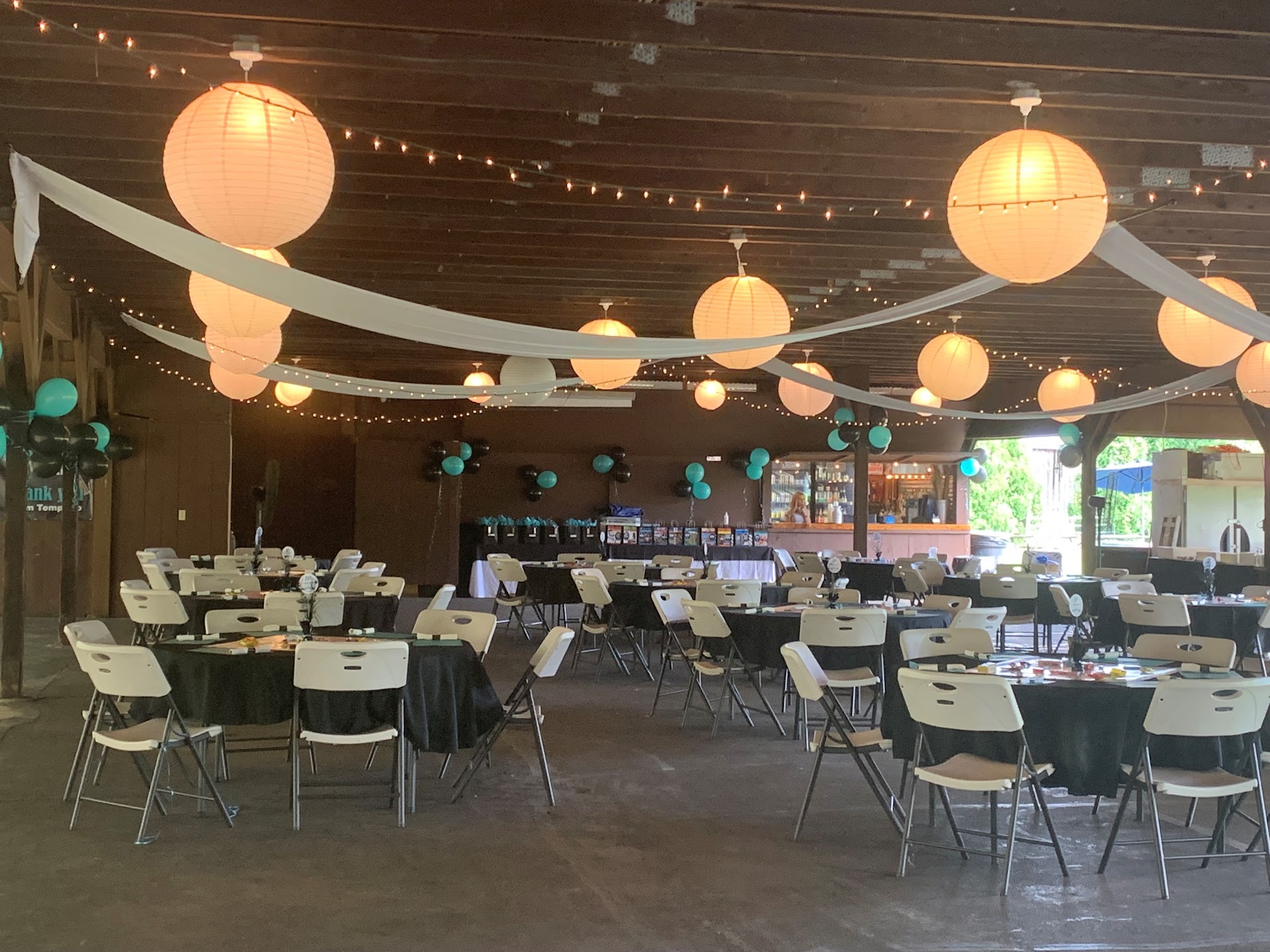 My husband and I had our wedding celebration in the pavilion a few weeks ago… it was perfect. We had a BBQ buffet line, and the outdoor kitchen was great for prep. There’s a counter between the kitchen and guest area that was perfect for serving dinner. On-site bar kept our guests happy, and they even specialty stocked the bar with a beer they normally don’t serve, at our request. The staff that helped throughout the day was super helpful and professional.