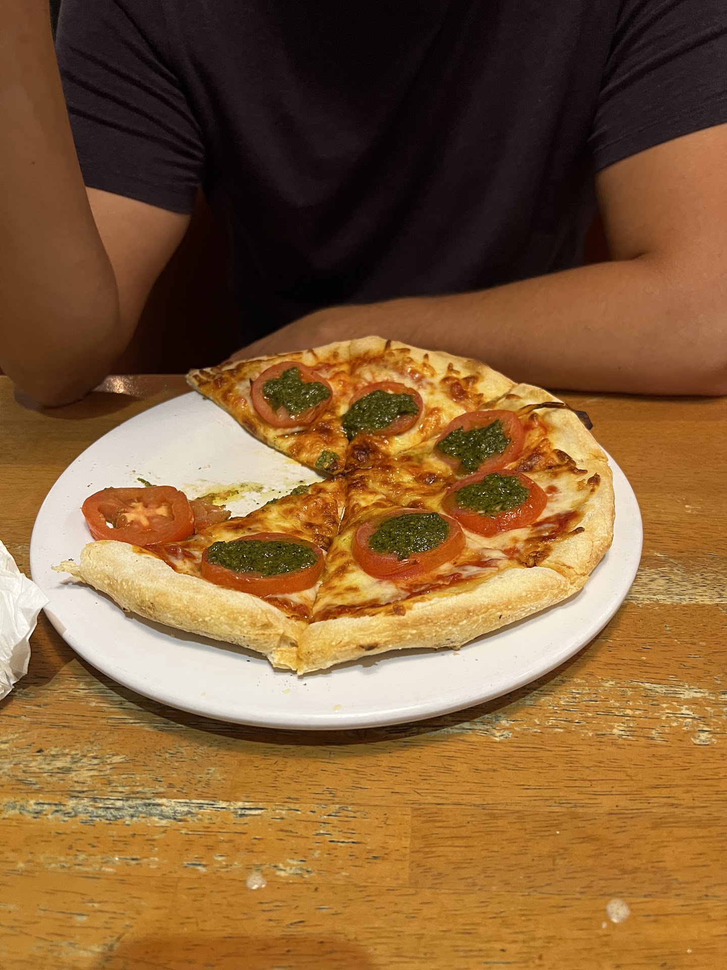 Anyone saying this place was great thinks Olive Garden is peak Italian food, and this was worse than that. I would rather have eaten Olive Garden than this garbage. We had an appetizer of calamari, the calamari was old and rubbery, and the fryer oil had not been changed in far too long, leading to a bitter taste in the fried exterior. I had chicken Alfredo, it was also terrible. Rubbery chicken, Alfredo sauce that was more water than cream or cheese, and had no discernible cheese flavor. My friend got margherita pizza, this pizza they gave us had to have been frozen, a bland cheese pizza with thick slices of tomato and heaps of pesto. Not even a margherita pizza by definition. Pizza Hut across the street would have been a better pizza experience. Will not return, and neither should you. This establishment is blasphemy in the face of real Italian food and...
