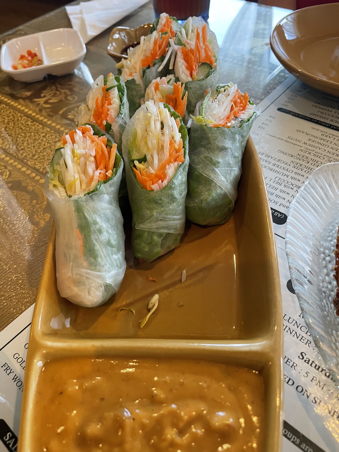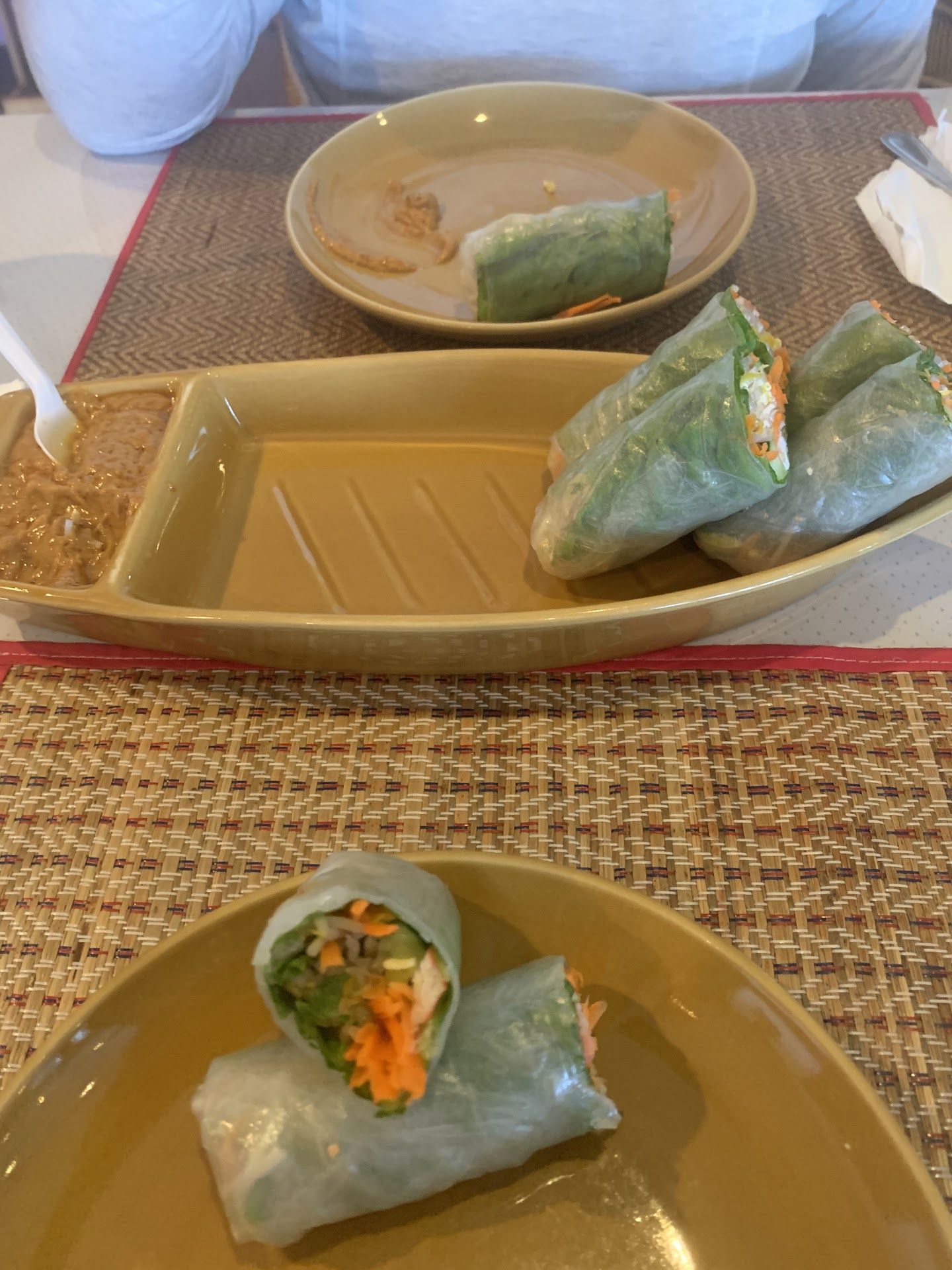 We ordered hot tea and thai milk tea to drink. For starters, we ordered the vegetarian spring rolls. For our main dishes, we ordered the pad se ew with beef, fried wings and salt and pepper shrimp. All of them were delicious!