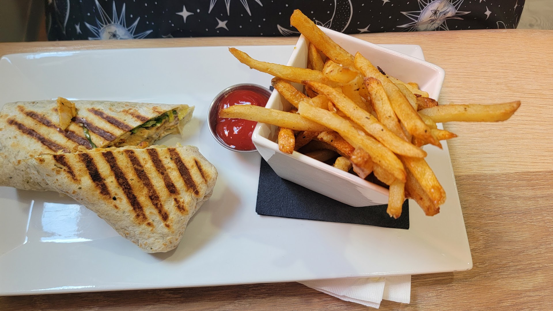 I ordered the Cuban Panini with the truffle fries. The truffle fries were not worth it. They tasted almost exactly like their regular fries. It just has a light coating of truffle oil & tiny truffle flakes that you cannot really taste over the salt & potato. The Cuban Panini was really good and satisfied my craving. But I wouldn't say it compares to Cuban sandwiches I had in Florida, so if that's what you're looking for I'd temper your expectation. However the ciabatta was perfectly crispy on the outside & soft / chewy on the inside. I feel like there wasn't quite enough swiss cheese, and definitely not enough mustard for my taste, the pulled pork was tender & juicy, but I feel it was lacking seasoning. The ham was high quality and the pickles were exactly right. 7.5/10