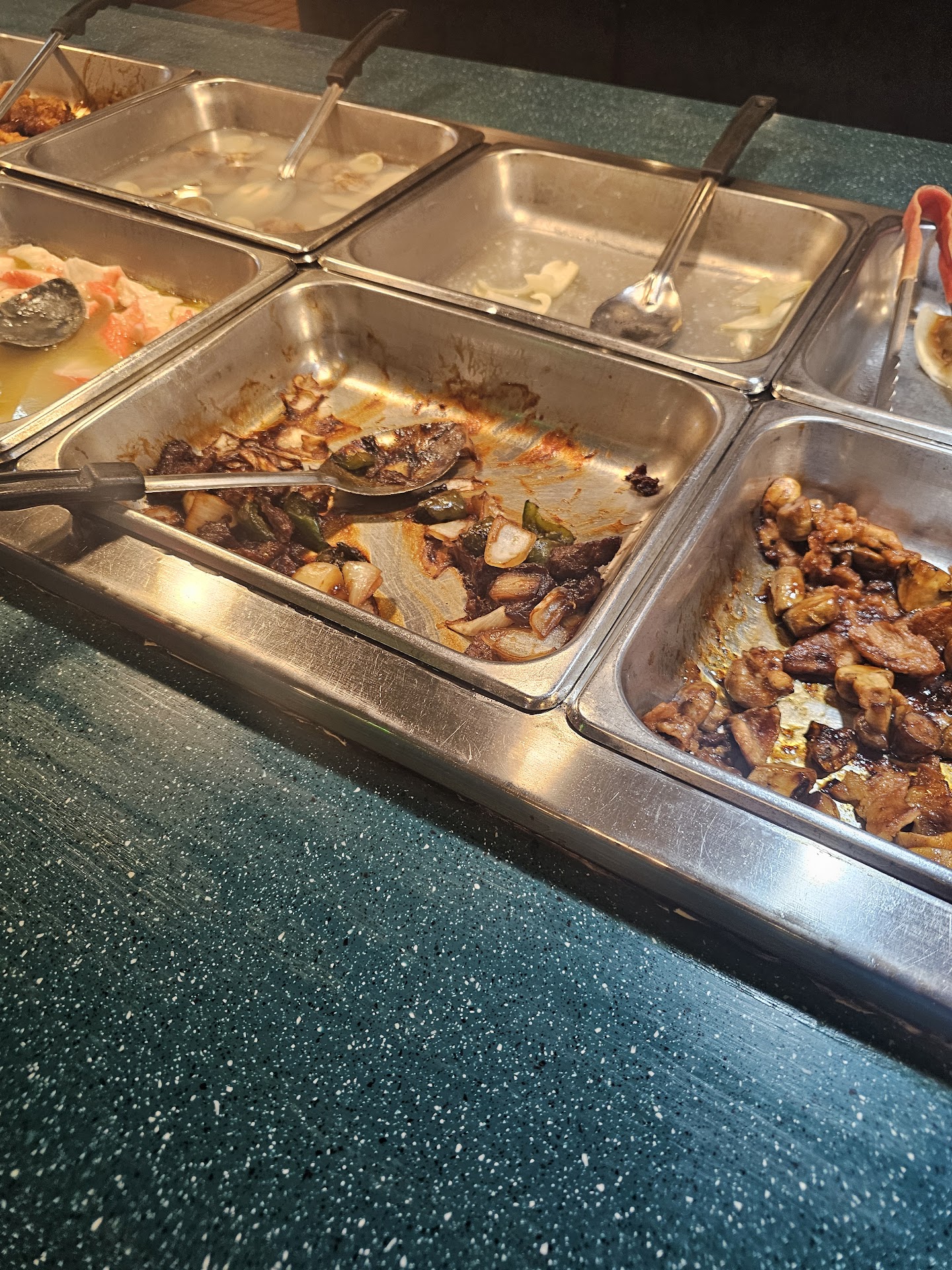 Ā Ā Ā Read moreWent for Lunch Buffet around 12:30 today (Tuesday). Paid $30 for 2 adult 2 kids with water. I liked the lo mein, general tsoās, egg rolls, and wontons, which is mainly what I go for anyways. Wontons were just slightly sweet compared to others Iāve had, but tasted pretty much the same. I tried some of their other options and liked most of it. Was bummed about the sweet and sour sauce, almost like it has a weird cherry taste and not what I was expecting, they need to take that out. However, the chicken was delicious without it, that tempura crisp. My kid was gobbling it down. Salad bar was mehh..Lettuce needed changed out and my wife ended up not making one. Bathrooms need some maintenance but relatively clean. Iām not bashing them at all. Seemed to not be very busy and so they arenāt gonna swap stuff out that isnāt being eaten. They didnāt have any rice out that I saw which was kind of weird. Wish theyād have that as an option. Atmosphere is calm. I believe it was just light radio music. Idk why people say they donāt bring fresh stuff out because I got some steaming hot general tsoās when one of the chefās came out and refilled it. You just canāt expect to fill a big plate up and it all stay warm. The host was very nice and doing all she could really on a Tuesday. People constantly going up to pay, Doordash orders etc. I will go back. They have room for improvement, but the location probably makes it hard for them with all of the other restaurants on the strip there. If they had more business and change their selection a bit they would do much better. That...