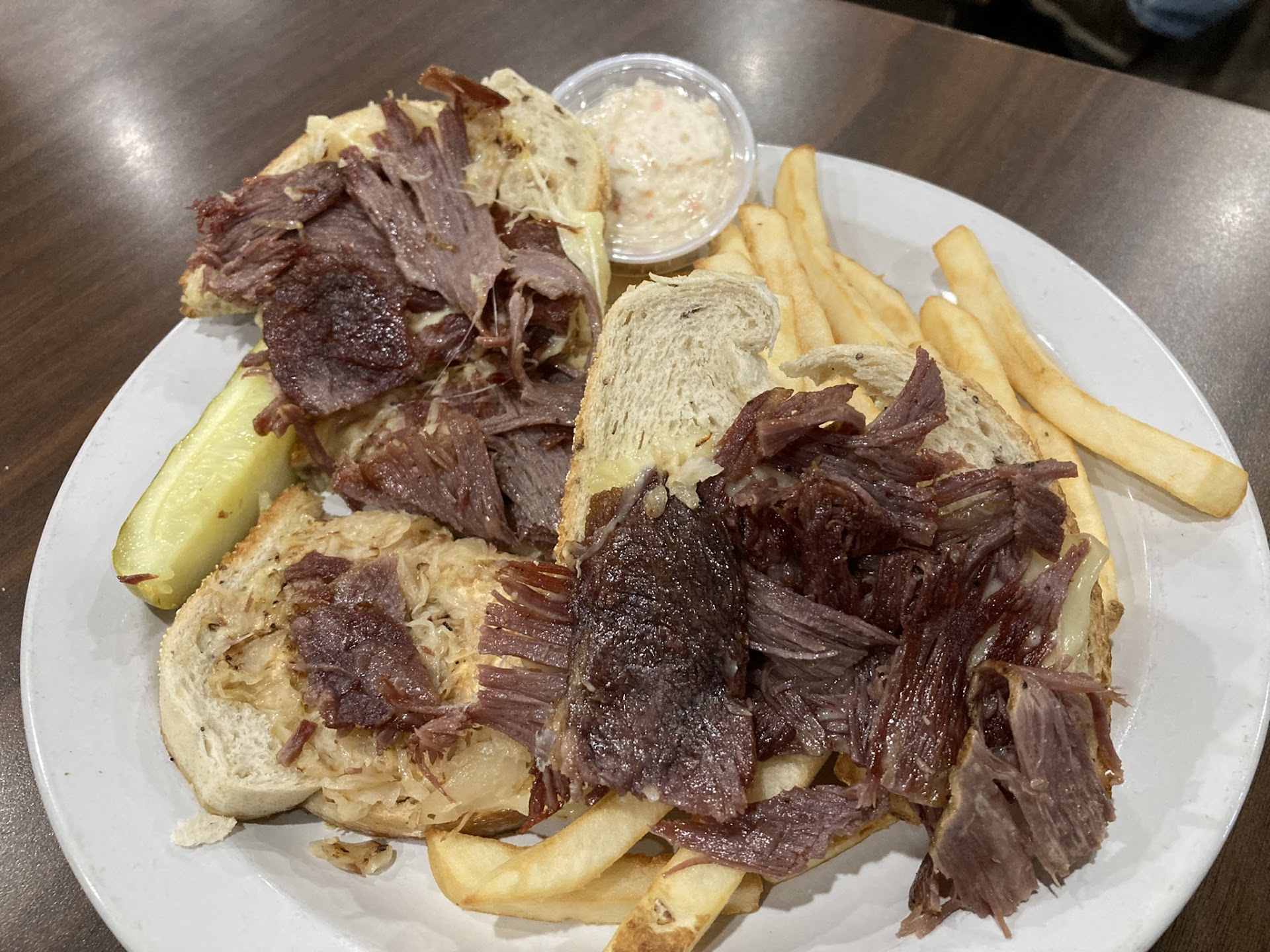 Well, we wanted to go somewhere different to eat, so since we hadn't been to the Hub City Dinner, we decided to check it out. Inside, it looks like your typical dinner and appeared to me to be clean. The menu was huge with items. I said to my wife that I heard that many chef's have said that a restaurant with a menu with a huge amount of options really doesn't have great food because that can't focus on quality. I consider myself Reuben Sandwich connoisseur and always get the Reuben where one is offered. So, I ordered the Classic Reuben with fries and the wife ordered the Hot Roast Beef Sandwich with fries and covered with gray. We asked the waitress for well done fries, you know crispy, and even pointed at the dark brown table top and said they could be that dark. We received our meals and my Reuben Sandwich was down right inedible. The bread was not toasted, the Corned Beef was dark brown in color and half of it was tough and stringy and the rest was corned Beef jerky, hard and nasty. There was barely any cheese, sauerkraut, and maybe a teaspoon of thousand island on it. Not only was the fries not well done, they weren't even done and were mushy. Although I was hungry, I only was able to eat a third of meal because it was just that bad, all of it. My wife said that her Roast Beef Sandwich was good (there was a lot of gravy on it so I could not see the beef or bread), but said that the fries were under cooked and she only ate a few. A women, not the waitress, came over and took my plate away and could clearly see that most of the meal was uneaten. After we received our check we went up to pay and it was the same woman that picked up my plate from the table. See asked if everything was okay. I had told her that it wasn't the worst meal I have ever had but it was a close second, and told her my experience with the nasty meal. She did offer to take 50% of the bill but my wife and I are not like that. Were not looking for a cheap or free meal and insisted we pay the full amount. I advised her we just want what we paid for, a good meal. She then gave my wife a magazine and said that there take out menu was inside, no thank you. Well need less to say, I will not be back there to eat again as I don't want to throw good money after bad, again. I'm not trying to tell anyone not to go and experience Hub City Dinner cuisine, as I would not skip going to a restaurant on someone else's bad review(s), just passing along my experience. Go and experience for your self...but you were warned about the Classic Reuben and uncooked fries, though. I would have only given it only 1 star but gave it 2 stars because my wife said her sandwich was good. Good...