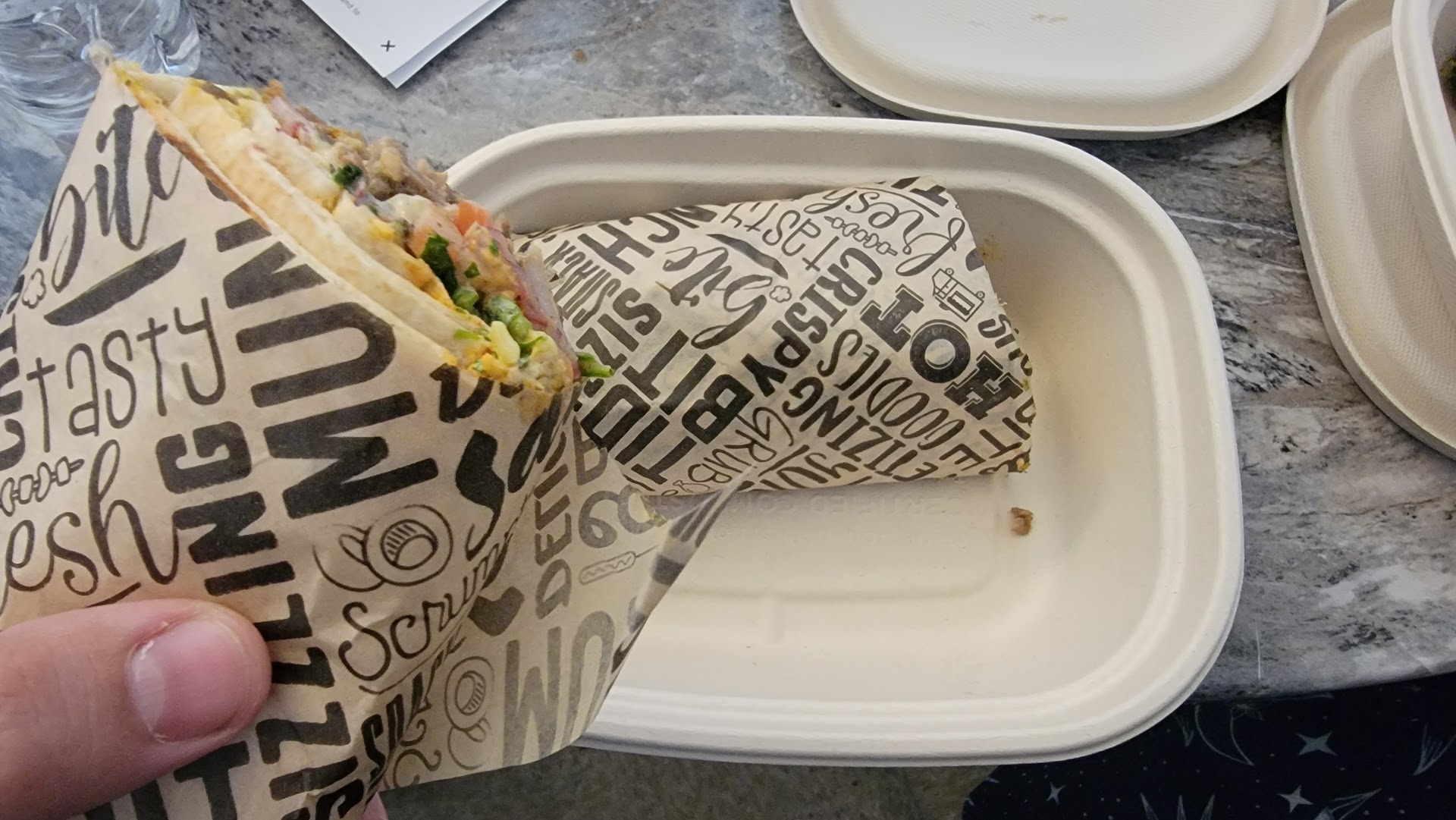 Honestly I also can't deny that I enjoyed the fact a little too much that I was in and out with fresh food in hand while driving past the exact same cars still in line at Burger King knowing they probably paid more for a much less fresh (and fresh feeling after eating) meal. My bowl lasted me 2 meals (plus a toddler nibbling), And I do like their to-go containers a bit more than the other places as the lid could pop on and off a bit easier with their bowl but it was still a nice compostable bowl. I am going to try to make time soon though to dine in.