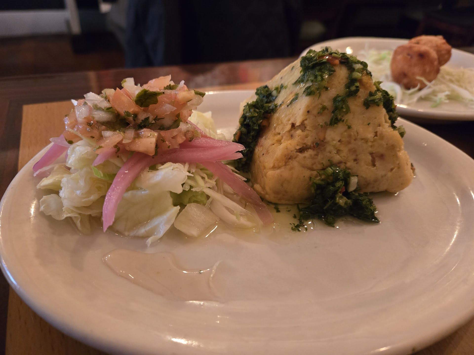The empanadillas were good and the sauce had a nice flavor. The mofongo was very dry and did not taste like platinos. It reminded me of boxed stuffing and there was next to no sauce on it. The arroz con gandules was terrible. It tasted like it came from a box as well and just had gandules and ham added to it.