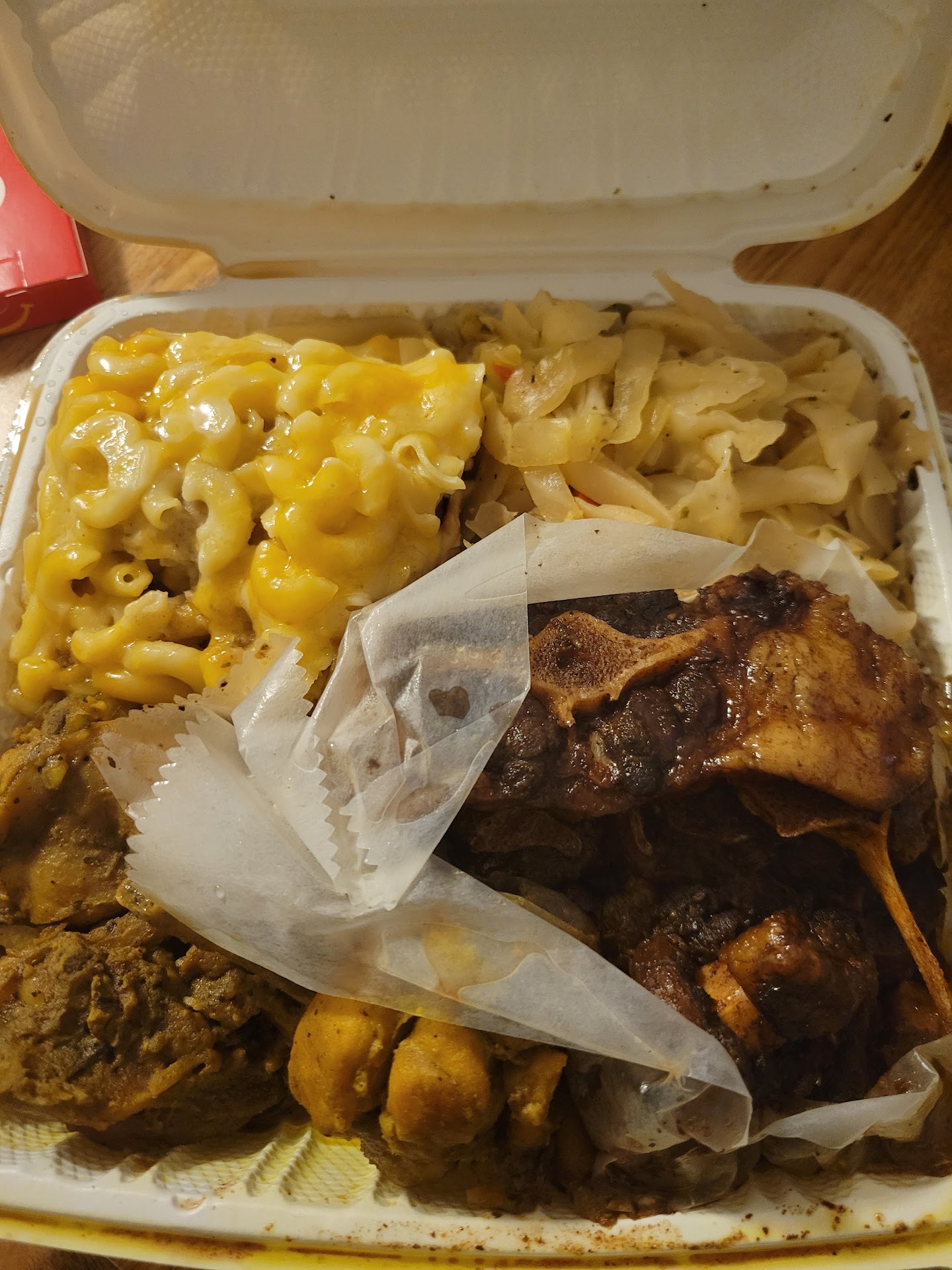 Delicious flavor, friendly people, large portions. My sister was craving Jamaican food so we decided to try out a new (to us) spot in Hagerstown. We were looking for a spot that had good vegetarian options for our friends. Iâm not super familiar with Jamaican cuisine beyond Jerk Chicken and rice and peas so I tried to pick some things that sounded good. I ordered over the phone and they were very patient with me not being able to pronounce everything perfectly but they took their time and made sure to get our order completely. They were super friendly and the food was ready to pick up quickly! We tried the Coco Bread which was huge as well as nice and sweet and fluffy. We also tried a vegetarian patty which had a great flaky crust on the outside. Next we tried the Ital Stew which I wasnât sure what it would be exactly but he said it would be a variety of mixed vegetables. The vegetables were cooked perfectly and had a very mild but great flavor! There were so many of them in the portion as well! The rice and peas were tender yet not overcooked at all, and deliciously seasoned... they had a hint of heat in the aftertaste that was very pleasant. My sister got the Brown Stew chicken with mac and cheese and rice and peas. The brown stew chicken was HUGE... had a nice sweet flavor and the chicken was tender falling off the bone. The mac and cheese was very good. You can tell itâs homemade, in a good way. Like your favorite aunt whos been making it for years made it for the cookout. The steamed callaloo was an unexpected favorite for the table. We absolutely loved it- the greens were cooked perfectly and we felt it had a very light tasting flavor as opposed to some lard/bacon heavy methods of cooking greens like that. It doesnât taste overly vegetable-y either... I think little kids would even like it. And then a pleasant buzz from the heat of some peppers. The jerk chicken also had a pleasant heat, and again a huge portion for what was called a âsmallâ!! There was also a nice tangy sauce on the side. All in all... the people were very nice and the food was so delicious! I love finding a place where I can eat vegetables that are cooked in a flavorful and healthy way. On top of that, the food is affordable and you definitely get what you pay for... everything was huge! I would definitely recommend...