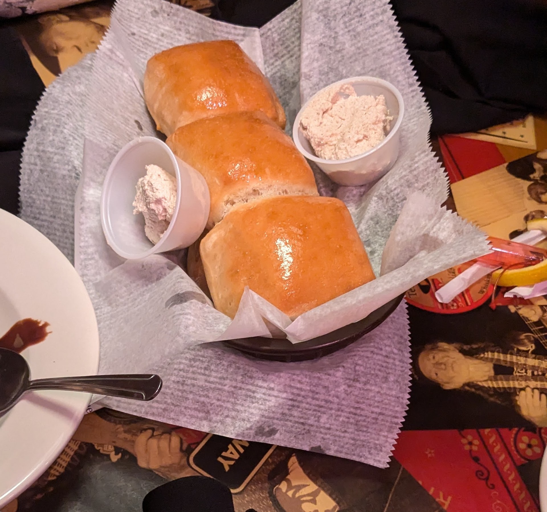 Read morePassing through last night and we wanted steak for dinner. It was very busy as it was Valentines and we knew we were going to have to wait a while and were ok with that. Finally got to our table and the server was not the happiest but no biggie I am sure she was over worked cause of the occasion, place was hopping. Asked if she had cider and she said no, asked if she had spiked seltzers and she said no. So settled for water. After she went away we looked at the menue and there behold they have angry orchard cider (no surprise, is a chain and if one has they all will. Not our first visit) I ordered the 8 oz sirloin and she had the 8 oz NY Strip, both steaks asked to be cooked medium. She had mashed pots and gravy with green beans and I had chilli with mashed potatoes and gravy. I received my chili very quick instead of with our meal, tasted good but was a bit concerned when I god to the bottom of the cup and there was fried chicken pcs in the bottom, so I stopped eating, no thanks. Our meals arrive and both steakes you could tell were way over cooked and we were not even asked to cut in them to verify they are cooked properly as they are supposed to do, no biggie they were busy I guess. The biggest issue I had was the size of my steak, supposed to be an 8 oz sirloin but smaller in diameter than my mashed potato bowl and was a very thin fatty grissle cut, see picture I posted. Both her and my steak were well done and no pink at all and dry unfortunately. First time I had this issue at any Texas Roadhouse. I never return food because well I have seen the movie waiting and recomend the rest of you do as well. I will chalk this up to a fluke due to Valentines and they were busy but the quality was definately lacking. Not sure if we would stop back by this one on...