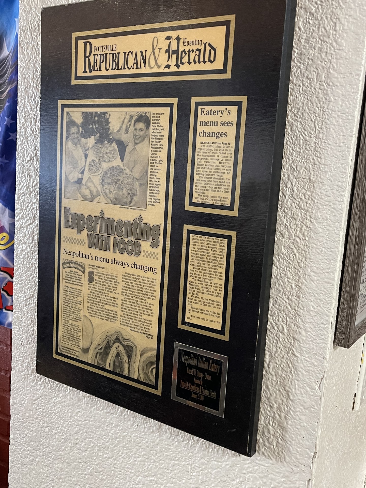Read moreFirst in person visit. Family has brought "doggie bags" home of stromblis which are very good. I chose to get veal parm, a little disappointing. Il Forno in Lakeland is my gold standard for veal parm. This was no where close. Sauce on spaghetti looked and tasted like Ragu, which I don't purchase. Even with grated parm and more oregano, dull. The veal steak was good not great a couple of grizzle spots, nothing major. Well cooked, well sauced which appeared to be different from the spaghetti sauce, possibly pizza sauce? It was way better. The breadsticks that it came with were nice. Seasoned, and well cooked. A side of sauce would be nice, but plenty with dinner to use. Side salad, were nice, nothing special. Nice creamy Italian dressing, your typical food service item, thats not a bad thing. The stromboli family got was HUGE! Looked very good! I didn't try any. The pizzas I saw come out looked appetizing! From past stromboli left overs they are very tasty with a nice sauce to dip to spread on servings. My dinner seemed to come from the mystery kitchen in back. While pizza and strombolis were made out front by what looked like the owner. They also looked to be training new staff on our visit. All staff was pleasant, helpful, with only one minor quibble. Our server forgot the onion ring appetizer family ordered. No biggie with soup and salads they did not really want it. So we did not mention. Bottom line? Would I go back? YES! But I would stick to pizza or strombolis over dinners. And that sounded like the same for most of the phone orders I heard come in. The desert pizzas sounded interesting, I just was full. Note: They like many others now give a cash discount vs. card (thats the law and rules for visa etc.) I fully undetstand, just fyi. Also bring your card none of that fancy...