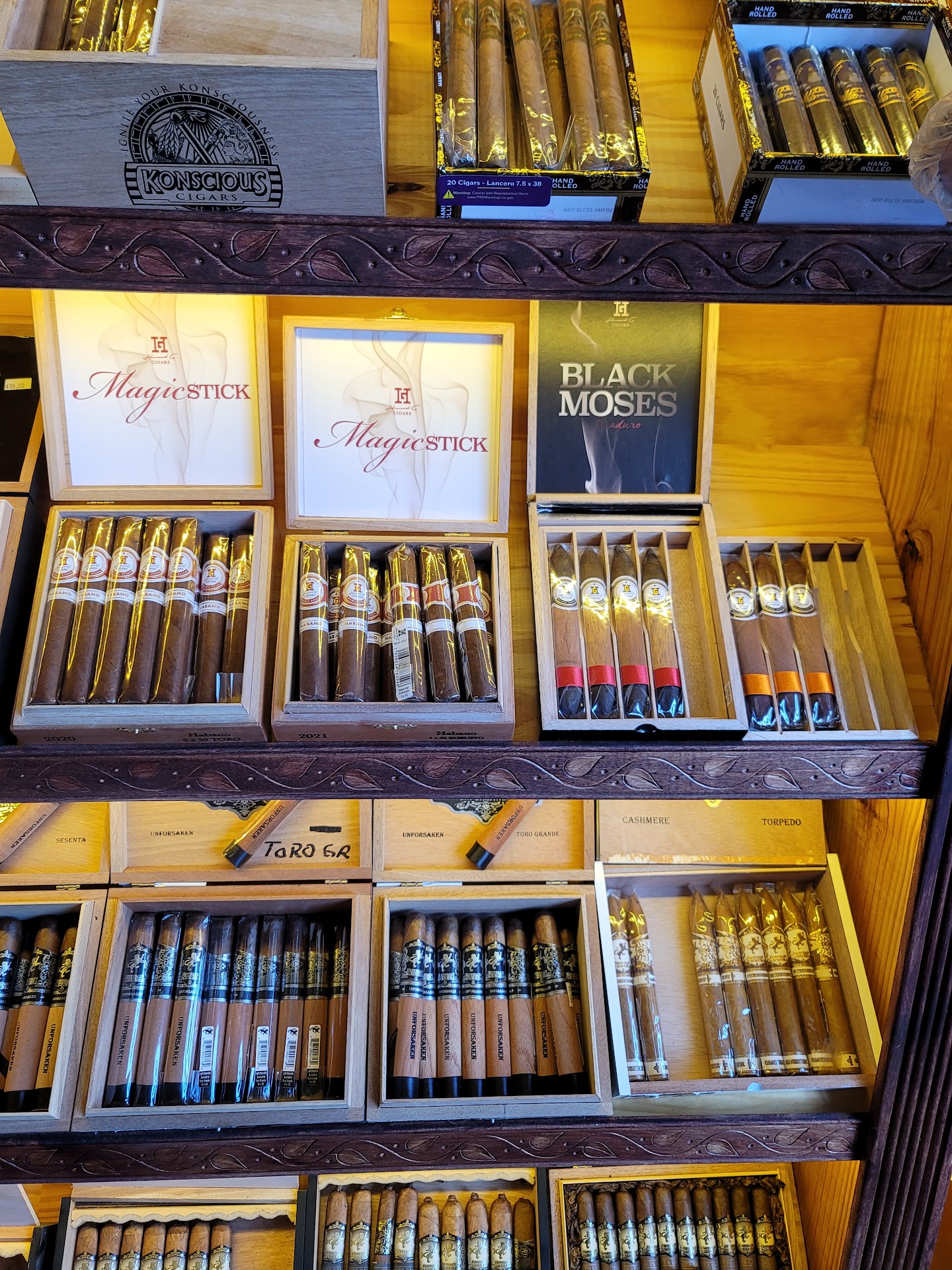 What an amazing experience! From the moment we walked in, we were warmly greeted and felt right at home. The decor was beautiful, creating a cozy and stylish ambiance that added to the overall experience. The selection was impressive, with plenty of options to choose from. The owner, a beautiful soul and talented DJ, had the perfect grown music playing, adding to the vibe. He was incredibly knowledgeable, providing us with detailed information about each category and suggesting the perfect pairings for our wine. We also loved meeting the regulars, who were super friendly and made us feel like part of the community. A highlight was meeting the manager—she was friendly, super helpful, and ensured our visit was perfect. A bonus was the top-notch ventilation, which made the atmosphere even more enjoyable. Between the exceptional customer service, quality cigars, and inviting ambiance, you simply can’t...
