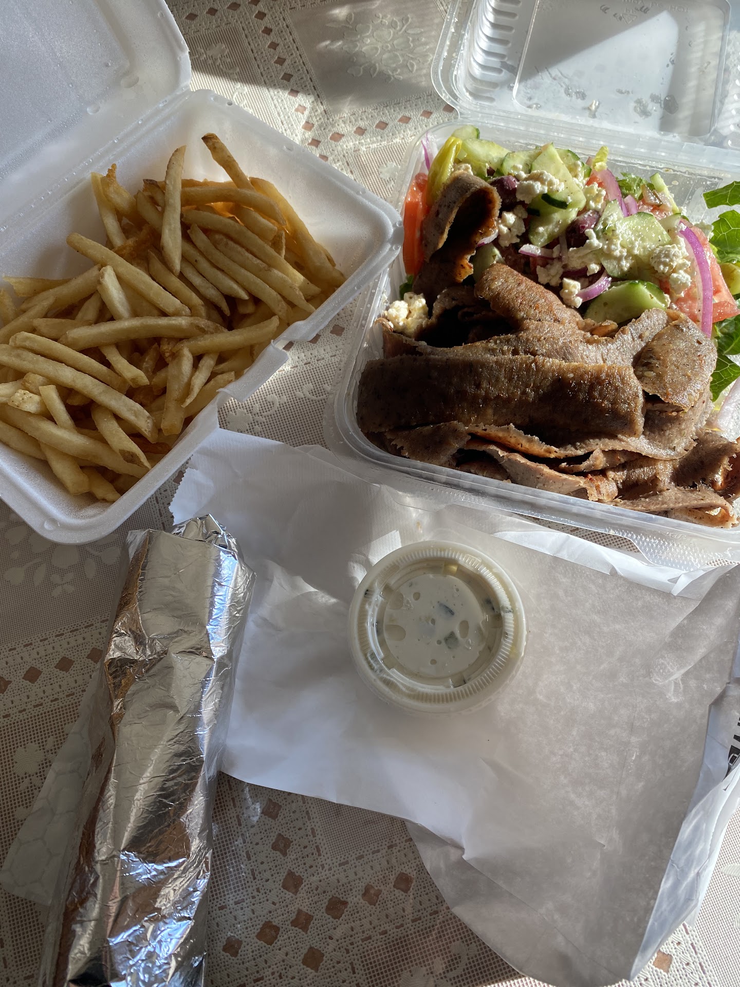 Good: Gyro hit the spot, good portion size. Street style gyro was better than regular gyro, glad I tried it. Friendly staff. Mostly clean dining room, staff promptly cleaned after guests left.