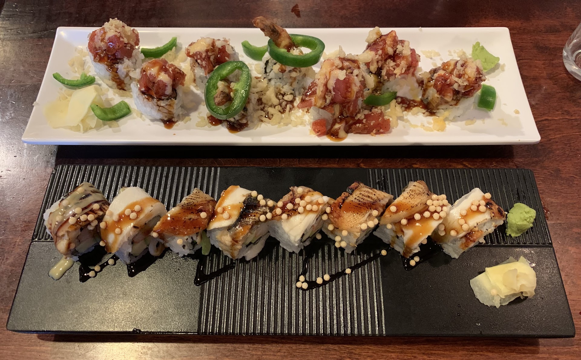 Once we got inside, my mood quickly changed. The place was busy and full of happy customers. We were seated just a few minutes after we arrived and give nice professional looking table menus. We were happy to find that they still had some of their old staples near the back of the menu such as General Tso's which we decided to split and order a couple of sushi rolls as an appetizer. Everything was presented beautifully and tasted great. I will mention that the fried chicken had a distinct taste of overused fry oil, but perhaps this was just due to them being busier than they expected, so I will return and report on that again at a later time.