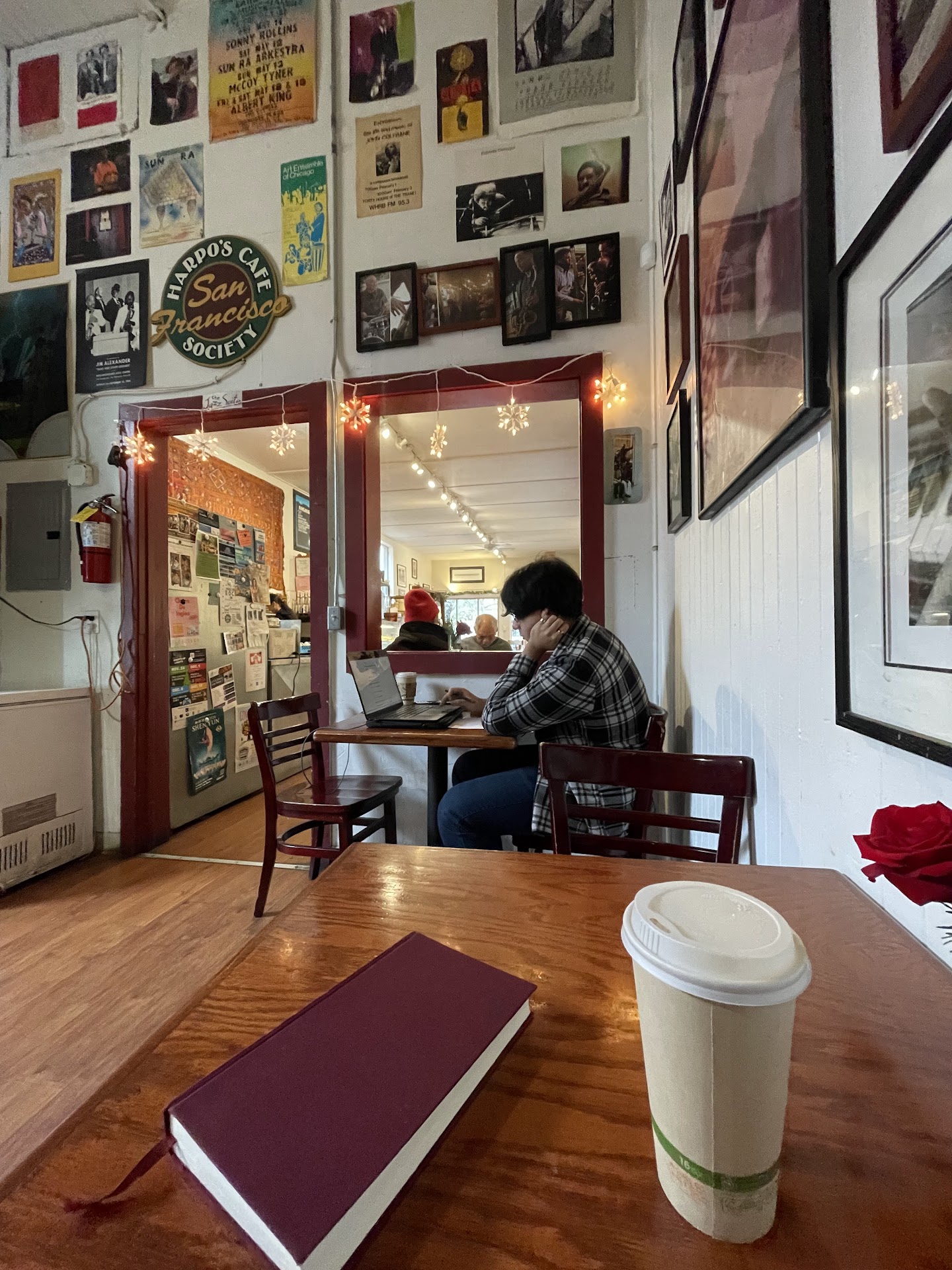 I work in HMB a day or two every few weeks. I have been here 3 times and it is a cute place, sometimes with live music. The first time, I waited about 5 minutes to be served even though it wasn't busy and the women behind the counter saw me. They were doing something, so I was patient, though I felt one should have come to serve the customer. Finally one of them came over, with no apology for the wait. I just had a latte, which was fine.