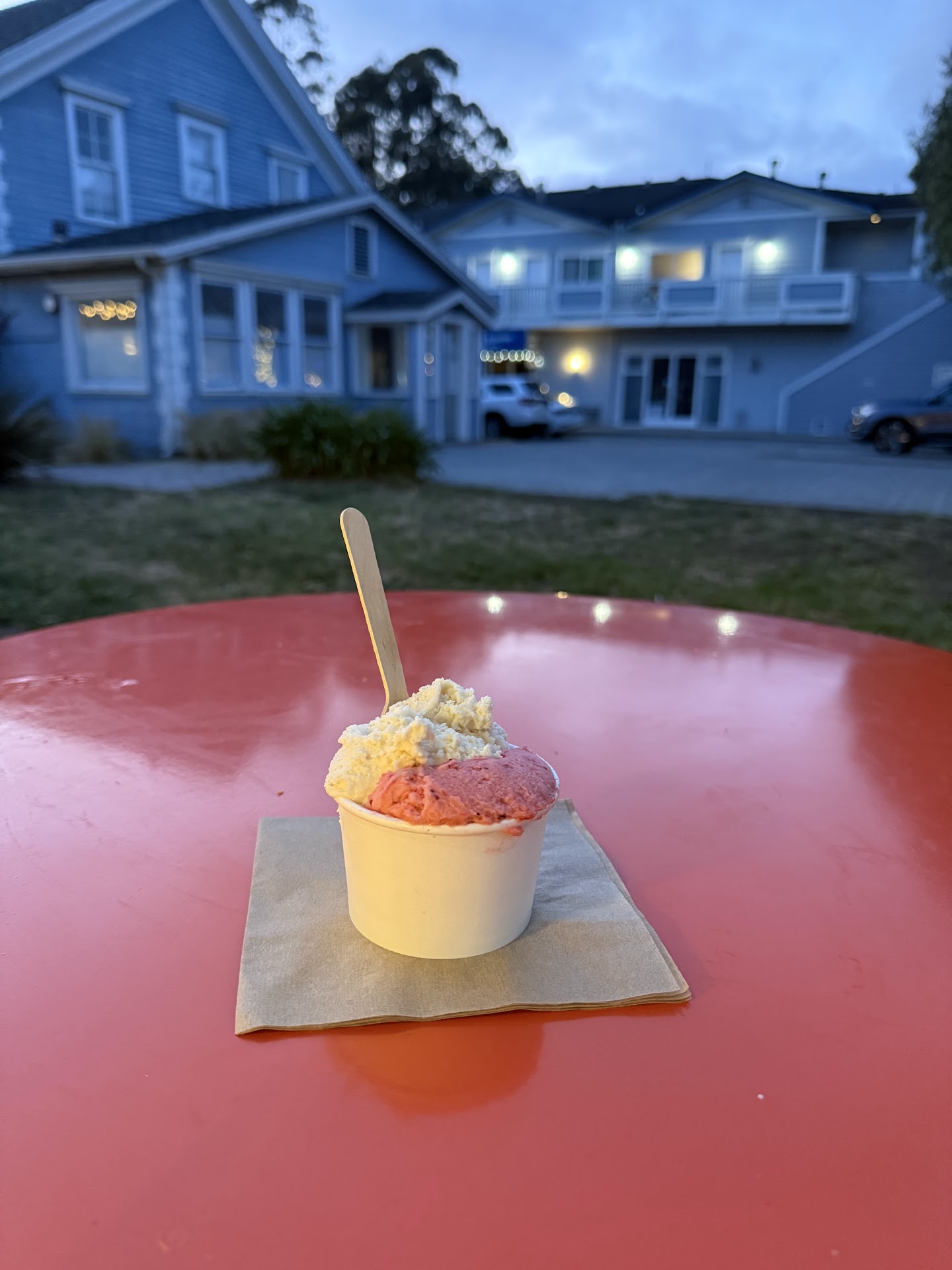 UPDATED REVIEW: So excited to report that our favorite craft gelato maker now has a new larger gorgeous corner space in Half Moon Bay. Right over the little bridge and on the right side, next to the children's boutique. They have several new flavors of sorbet and gelato available and they are all divine and made from scratch. They also make amazing fresh bubble waffles on demand with homemade salted caramel sauce, Guittard chocolate sauce or any number of organic fruit toppings. They will keep adding more to their menu as they get to full capacity.