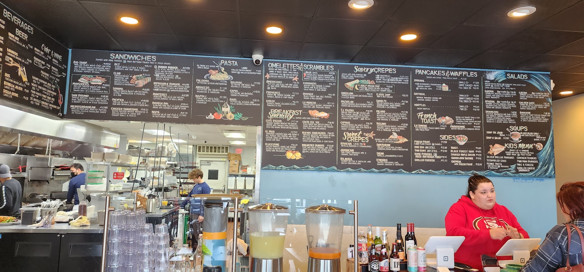 Ā Ā Ā Read moreI visited Mavericks Creperie for the first time on Saturday morning for breakfast, as a recommendation from the folks at Seahorse Ranch, and it was FANTASTIC! I consider myself a breakfast connoisseur and itās rare for a breakfast place to earn five (5) stars from me because Iām such a picky breakfast sycophant! As you can see from the pictures, Mavericks Creperie really does breakfast well. From the outside, Mavericks is unassuming because it sits in a strip mall. The restaurant is quaint with adequate seating. While I was there, I saw the restaurant accommodate parties as small as two (2) and as large as seven (7). Mavericks is a family run business and the customer service was fantastic. Everyone there was friendly, kind, and genuine in their desire to assist customers. Now, letās get to the good stuff, the food. My absolute favorite dish was the original pancakes. They were so LIGHT, FLUFFY, and AIRY. These pancakes were thick and made with love. I also got the Baja Omelette with egg whites (which I substituted at no extra cost), and it was also amazing. My wife ordered the French toast with bacon and potatoes, which, you guessed it, was also fantastic. Mavericks is GENEROUS with their portions and itās really worth the money. I canāt wait...