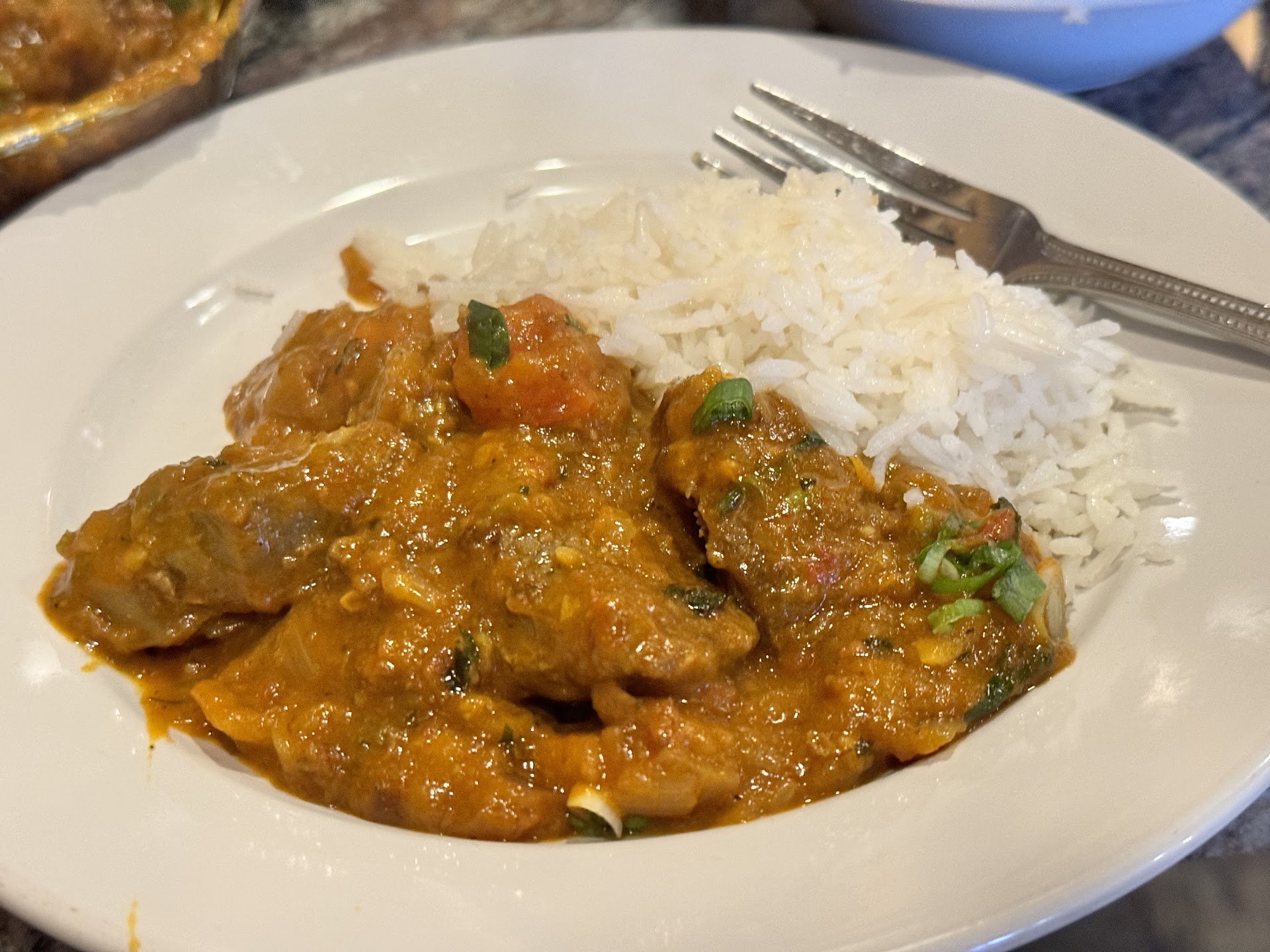 We both ordered a traditional Nepali vegetarian combo meal because we felt like it was a great value for everything that comes with it. It came with Daal soup, a salad with a mango dressing, choice of brown/white rice, saag curry (which is made from spinach), mixed vegetable curry, papadum with a dipping sauce, and some rice pudding with coconut, almond and raisin toppings. This is a great way to try a little bit of many dishes! You can also choose the spiciness level that you like, which is great because I don't like spice but my husband does. My husband raved about the saag curry and said it was the star of the show. I'm hit or miss with cooked spinach, but also though the saag curry was very tasty. The start of the show for me was the rice pudding though lol. Mostly because I absolutely love rice pudding. But everything was delicious.