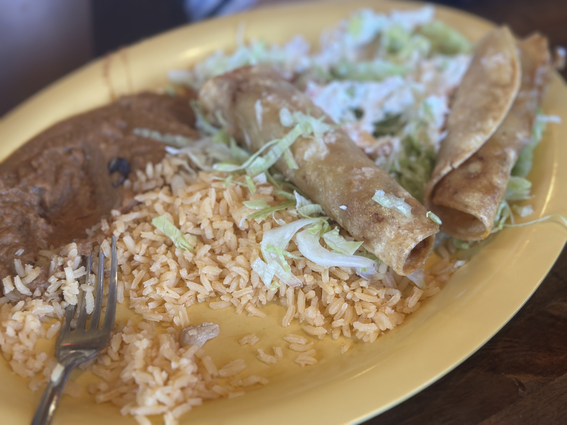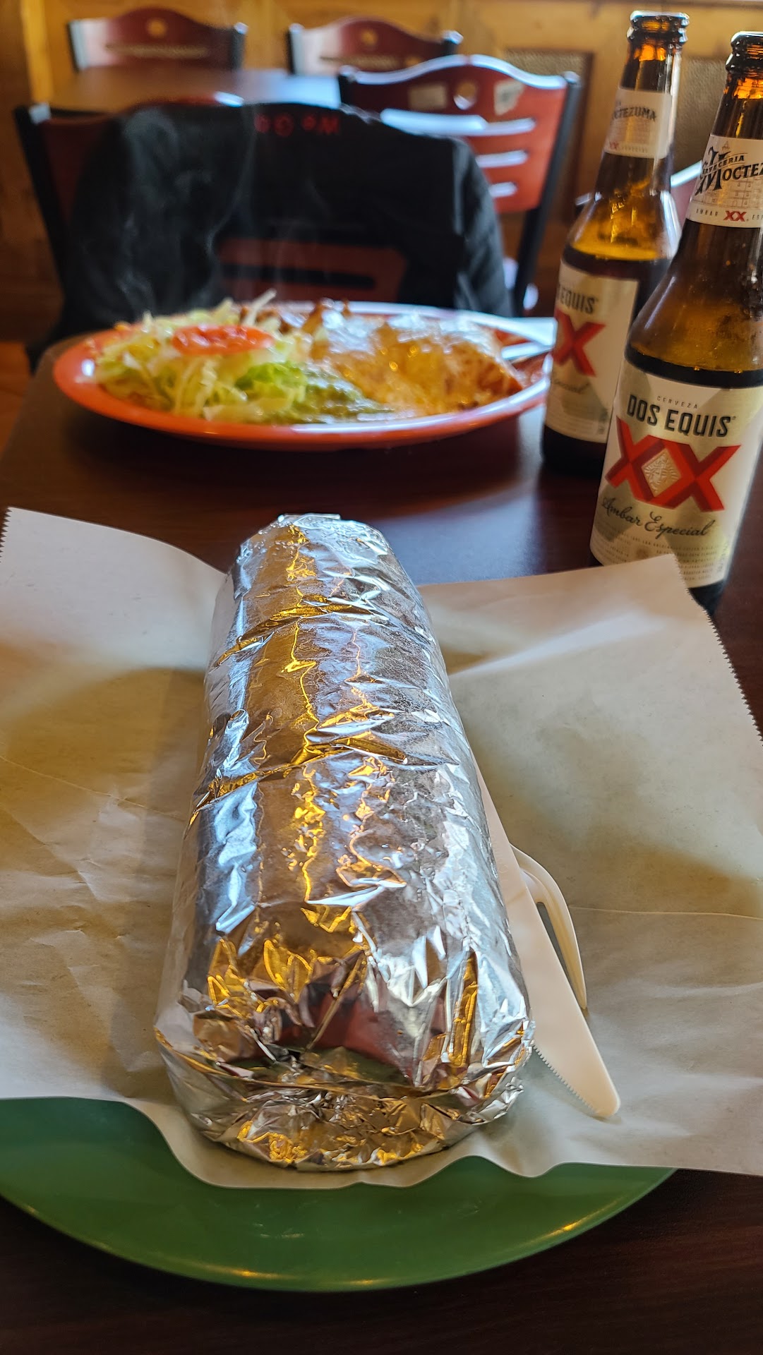 Read moreThe dining experience is okay at best. It feels like the hustle and bustle of Fisherman's Wharf and trying to order your food or get chips and salsa or even get water. Getting a table was an adventure. It's as if you are jockeying for some kind of position on the freeway, hoping to squeeze into a small table before the other five people rush in. Their chip bar was pretty good and was constantly being refilled. But , there's no Fountain drinks. It's a good business strategy to offer all you can eat chips and salsa bar while they serve over priced cans of soda and juice. The staff was not rude, but that doesn't mean they were nice or friendly. The attitude was pretty much, 'Thank you for your money........next in line!' The food came very fast, but my wife and my food came at different times. I had the jumbo wet burrito with carne asada. It was pretty tasty, though the meat was a little under seasoned. My wife had the chicken tamale with rice and beans. The rice and the beans did not taste like they had any seasoning at all and could use a good helping of salt. The chicken tamale was totally an edible. The chicken tastes like it been boiled and water with no seasoning and it was actually a puddle of water on her plate which made everything soggy. Needless to say I got to share my burrito. As a word of caution, Do not sit at the table that faces the chip bar. It's pretty much the "butt bar table" because when you sit down you stare at everybody's butt bending over trying to get chips and salsa right in front of you. No joke, they're so close you...
