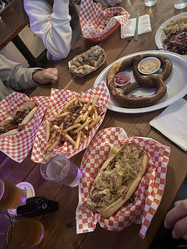 This pace is cute and fun. Lots of delicious German food, we loved the potato salad and my partner enjoyed the bratwurst. He had 1/2 potato salad and 1/2 coleslaw as sides which the bartender recommended and it was GREAT! The potatos were perfectly cooked and all of the mustards they offer as sides were fantastic. The brand of mustard they use Inglehoffer is so delicious and there were a bunch of varieties to try.
