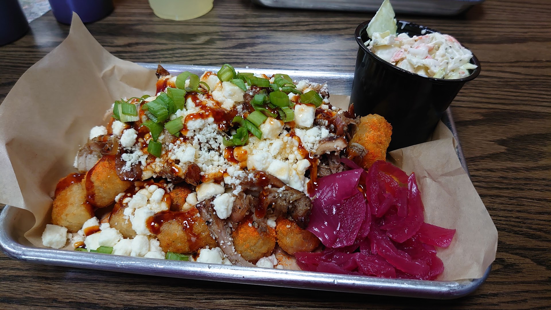 I started with the Peter mountain pile up with pulled chicken and spicy tots. They knew me very well because they pulled up on the feta cheese, which is one of my favs. Great textures and flavors. The tots were fried to perfection cause when all of the meat and sauce was added they held their own with all of the moisture.