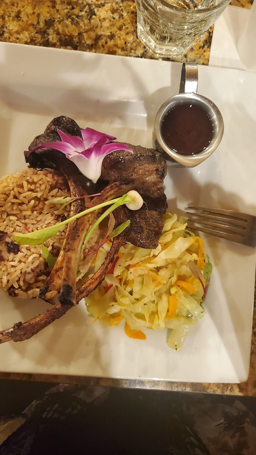 Read moreWhere do I start. SMALL PORTIONS & OVER PRICE.Went there for a celebration dinner once we sat down it took a while to get drinks. Service to our tables was very slow. Waiters seemed to be in a corner talking among themselves rather then waiting the tables. Once we placed our food it took 30 mintues for the food to come out for it to not be fresh. I had the oxtail and curry goat. Curry goat seemed fresh and hot. My oxtail however was cold and had too much fat on it. Order a side of shrimp. Which states shrimp skewers. Shrimp came out with some type of residue sauce menu did not state it came with sauce on it. The sauce wasn't my cup of tea. We asked if it can be made without the sauce. The shrimps came back with residue of the sauce from before meaning THEY JUST WASHED THE SHRIMP OFF. Did not recooked the shrimp at all. The service was bad took a while to get a refill on drinks and condiments. My meal came with three pieces of oxtails and three little pieces of curry goat. My husband order the two meats. He got fried chicken and jerk chicken. The fried chicken was reheated and not fresh. For the prices they charge the chicken NEEDED to be fresh. His fried chicken was cold and dark brown soggy not crispy at all. Overall...