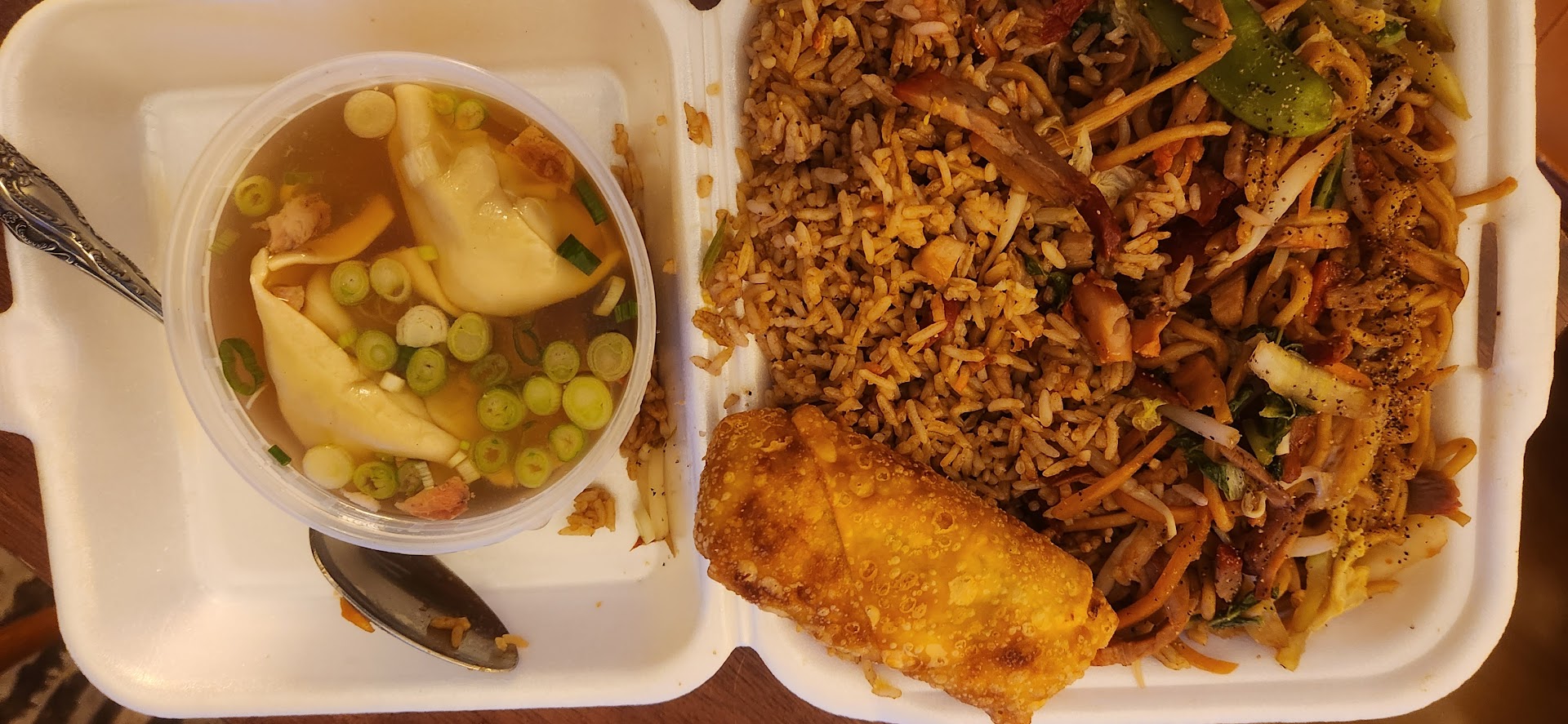 The chicken with broccoli was the star of the show. $10.75 for the large, and it took me a couple of attempts to finish the order. Very good and very big. The egg roll tasted like it didn't thaw long enough after it fell out of the Restaurant Depot bag.