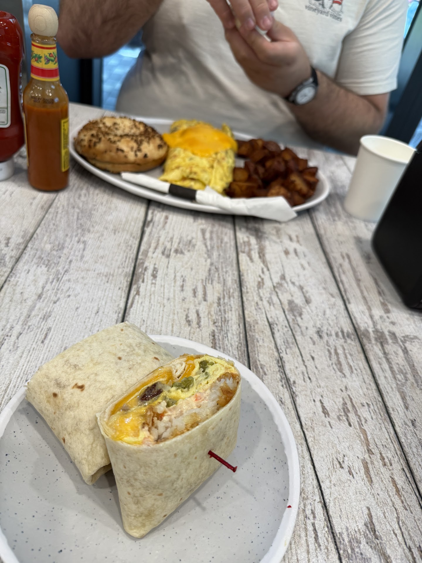 Read moreWe had a lovely visit to Mitch’s Bagel Ca We found this cute spot while searching on Yelp. We expected it to be very crowded especially for late morning on a weekend but it wasn’t. You order and pay at the counter and the food is brought out to you. They have indoor and outdoor seating. I ordered a bacon egg and cheese on a plain bagel and by boyfriend the BECTA. We sat outside and the food was brought out to us relatively quickly. We were also given French toast bites to try. The outside was slightly sweet and crispy, the insides soft, I liked them as is but my boyfriend liked dipping them in the provided syrup. The breakfast sandwiches were hearty, bagels soft. We enjoyed them, I could only eat half of my sandwich and saved the rest for later. The staff were very friendly and checked on us several times on the quality of our meals. Our only issue with this restaurant is the high cost of a breakfast sandwich. I understand the location but paying $14-16 for a breakfast sandwich is not something I do often. Overall, we did enjoy our meal here, I liked that the staff checked in on us while we were eating, you usually don’t get that at this type of restaurant and I enjoyed my leftover sandwich a few...