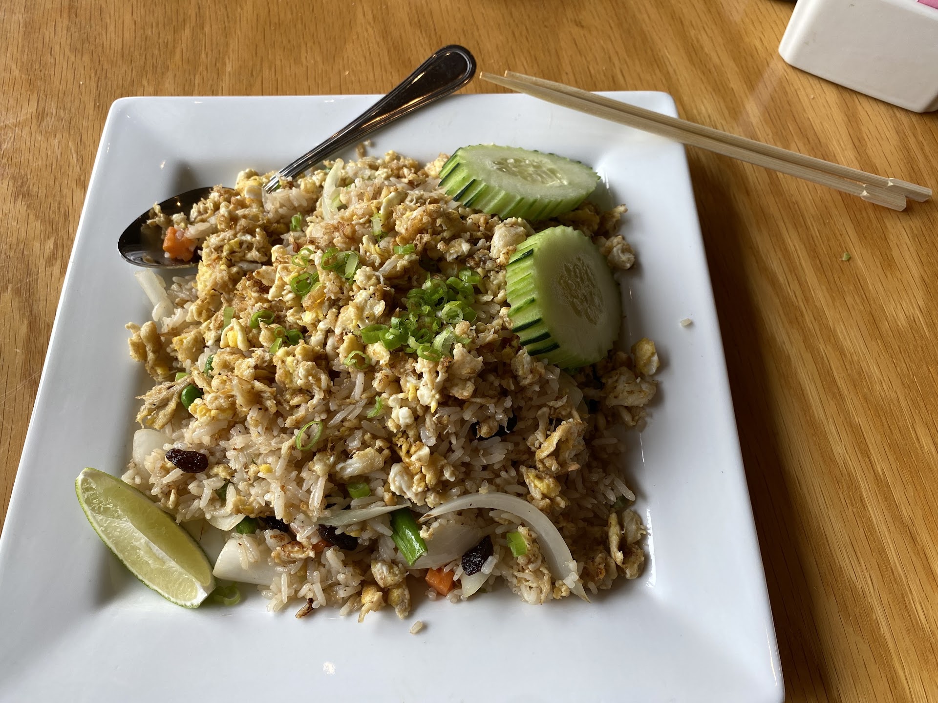 For a main course we shared a Shrimp Pad Thai Woon Sen ($17) and a Green Curry Chicken (Med) ($14.99) both served with rice. The Pad Thai was made with mung beans and very large tender shrimp. Excellent flavor. The green curry was a large bowl of wonderful chicken and vegetables with great flavor.