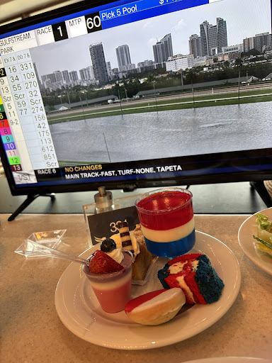 September 1, 2024: Unfortunately, I was unable to stay for lunch with my widows group because I had my registered service animal. We travel on Brightline from Palm Beach.. In the past years I've had an inviting experience. He's trained and lays on the ground never barks etc.. Love the food, ambience and service staff! Unfortunately, my understanding is they had a negative experience with a service animal and now you must keep them in a carrier only. Of course, I've never needed a carrier before and I don’t have one… we were unable to stay.. sadly I won’t be returning.. ——————————————————————— My experience on a very busy Preakness Day- May 20th was fabulous! After reading some negative reviews I asked Charles one of the Managers if I could look at the Buffet before being seated. He was so gracious and said yes! Wow! The Buffet was amazing! Very neat, clean,choices for every palette! Everything looked fresh and there was enough to feed an Army! it was busy but the lovely hostess offered me a choice of tables. I chose a table close to the buffet.. I had my service dog with me and didn’t want to leave the table for too long. I was quickly greeted by the most amazing server, Rita! A warm welcome, professional and friendly service made our experience 5 Star! A cold white wine was 1st to be served… The carving station had Prime Rib, Turkey and ham.. fresh made to order pasta station, jumbo shrimp cocktail, cheese boards, charcuterie trays, fresh fruit, salads galore, rice, ziti with sausage, meatballs, salmon, veggies, calamari, and so much more! Not to mention the Dessert station! I started with shrimp cocktail, brie cheese, prosciutto, salami, walnuts, calamari and popcorn shrimp. The shrimp were firm crisp and cold and absolutely delicious with their special cocktail sauce. A perfect way to start my afternoon of grazing! Yes, you can dine for hours… while watching the races and simulcasts, placing bets! Next was my favorite Prime Rib! I asked for 2 pieces and rare please! I added some au jus.. the prime rib was rare and delicious! Cut like butter.. piping hot! I also had the ziti with sausages, also delicious and piping hot. Now to the huge dessert station! I chose 3 mini desserts. The chocolate cake, coconut macaroon, and almond cake. The mini chocolate cake was easily the best I’ve ever had! Moist and creamy and delicious! The almond cake was also delicious as was the coconut macaroon. I truly believe this buffet was a great value! An all you care to eat for hours with great service and delicious food! I highly recommend and can’t...