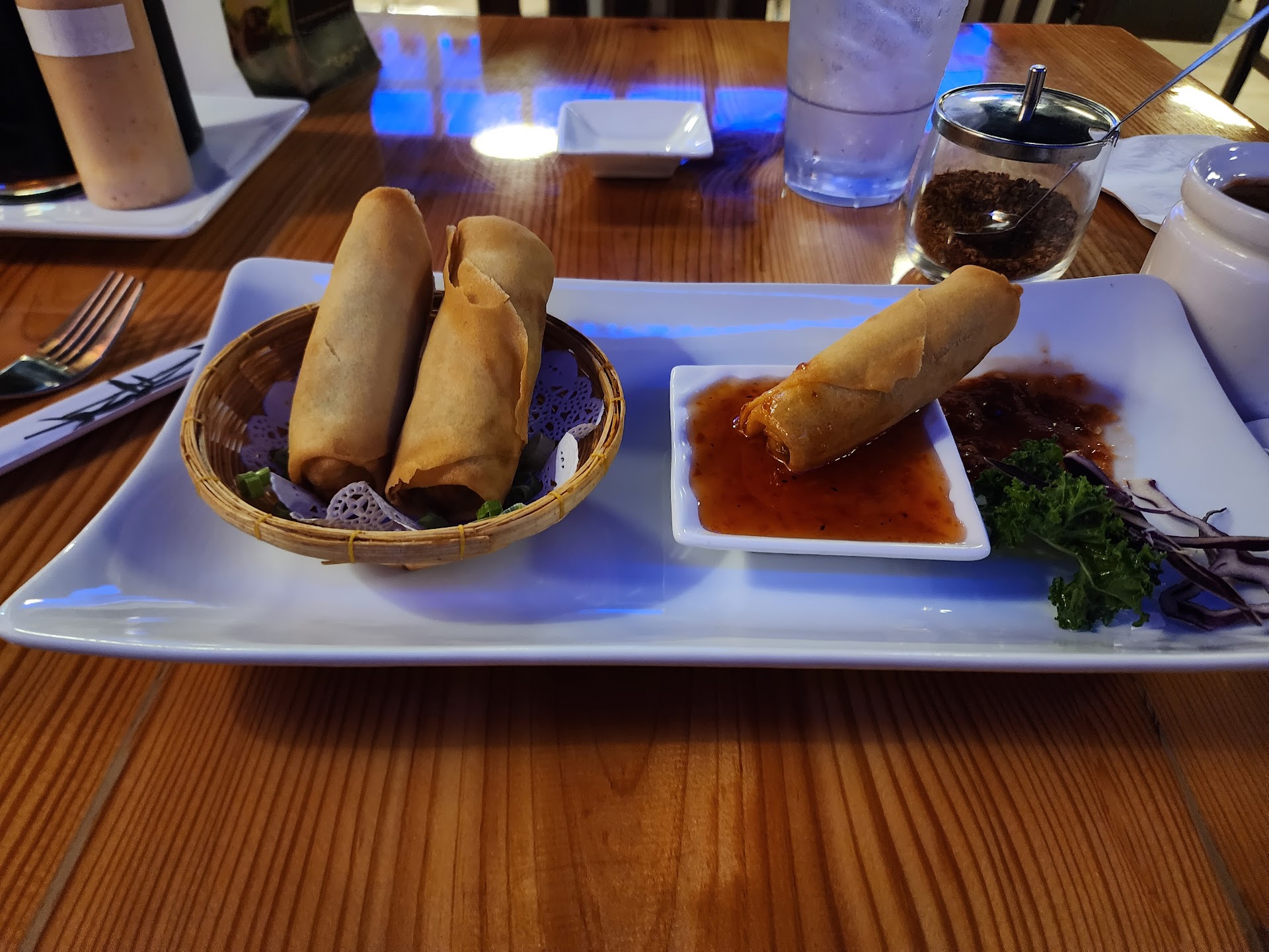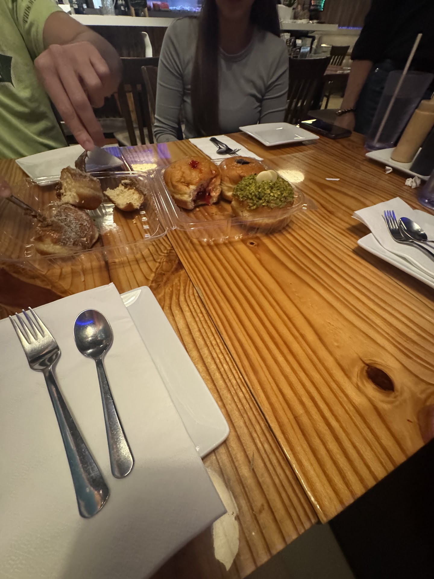 We started off with a Tom kha soup which was very milky and white which did not resemble a tom kha at all. Soon after we moved to the rolls where I ordered an Unagi roll and partner a traditional JB roll. After a rough start (aside from the teas) we were optimistic things would get better. It didn't. Upon receiving our rolls there was little to no eel at all in the Unagi and hardly any salmon in the JB. Then after trying - I hate to say Ive never had less fresh sushi that night in all my life. The seaweed + rice together was NOT fresh and chewy so (for both rolls) it took forever to properly chew it down to swallow. Moving on to the dessert we ordered thai donuts, after receiving them the server let out a "freshhh" which we thought was odd considering the food from earlier was not. The donuts ended up being delicious and indeed, fresh.