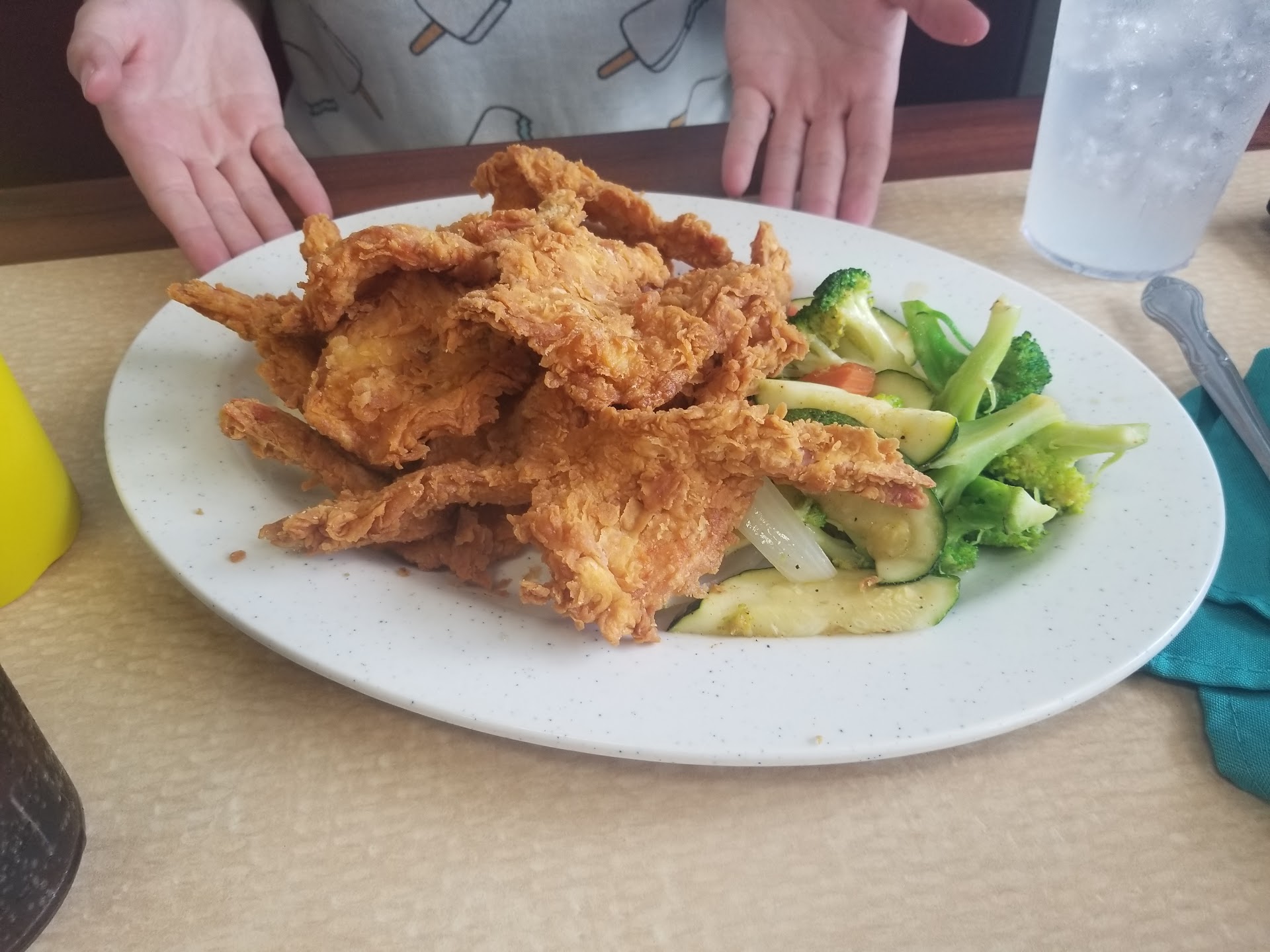Read moreFirst visit here. Won't return. The service was nice and the place clean as a whistle. The food however??? A BIG NO. Ordered the seafood platter every single item came from a frozen package,not fresh,not even cooked properly. The fish and scallops were still cold, not only that but it ALL tasted like old freezer food. The Cole slaw was tasty but so full of juices it ruined it, the so called stuffed crab was stuffed with nothing but bread....no crab meat at all. A BIG disappointment, especially when the owner asked how things were and I told her it wasn't good, and not cooked properly she did nothing except hand us the bill no questions about why it was not good and NO offer to do anything about...