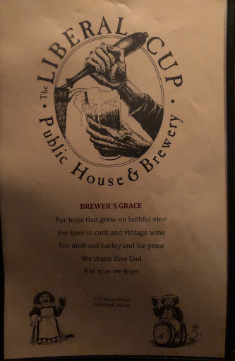 Read moreThe Liberal Cup is a cozy, quaint and trendy place located on historic Water Street in Hallowell. It has a "small town" pub feel and although greets anyone with "Hey Norm" it wouldn't seem out of place if they did. Five of us arrived mid-way through the lunch hour and found a place to sit with no wait. The service was friendly and efficient, considering we were there visiting close to 2.5 hours that's saying alot. The menu has a fair amount of choices you don't see at your average restaurant including Beer Cheese soup. The Bob Cobb salad was wonderfully fresh and tasty. I chose the Bleu cheese dressing to keep it classic, but it lacked the strong flavor of Bleu cheese and had no chunks of Bleu cheese. That's a must. Their dessert menu was posted on the wall board directly in front of me so I stared at cinnamon creme brulee for the entire meal, but when the hard decision came, I went with my favorite of all time, coconut cream pie. I had no complaints with my change of heart as it was incredible, from the perfect flaky crust to the coconut custard filling. The homemade whipped cream was just the right mix.of sweet and creamy. This is a great place to enjoy a dinner for two, a group of 10 or a business meal for...
