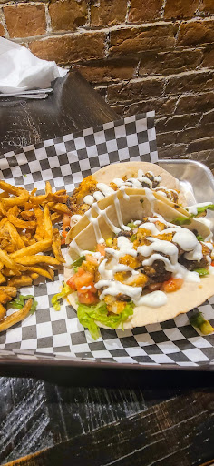The bathroom was exceptionally clean and huge, plenty of space to move around, a cabinet you can use to put your phone on it or whatever. The door to the bathroom has cool decor. The bar itself has plenty of tables and seating, but we sat in the dining room, plenty of tables everywhere. They have tables outside to eat as well. They have two tv's in the bar. Parking is kinda crazy. It's on the street parking but you can also park out back. Free...
