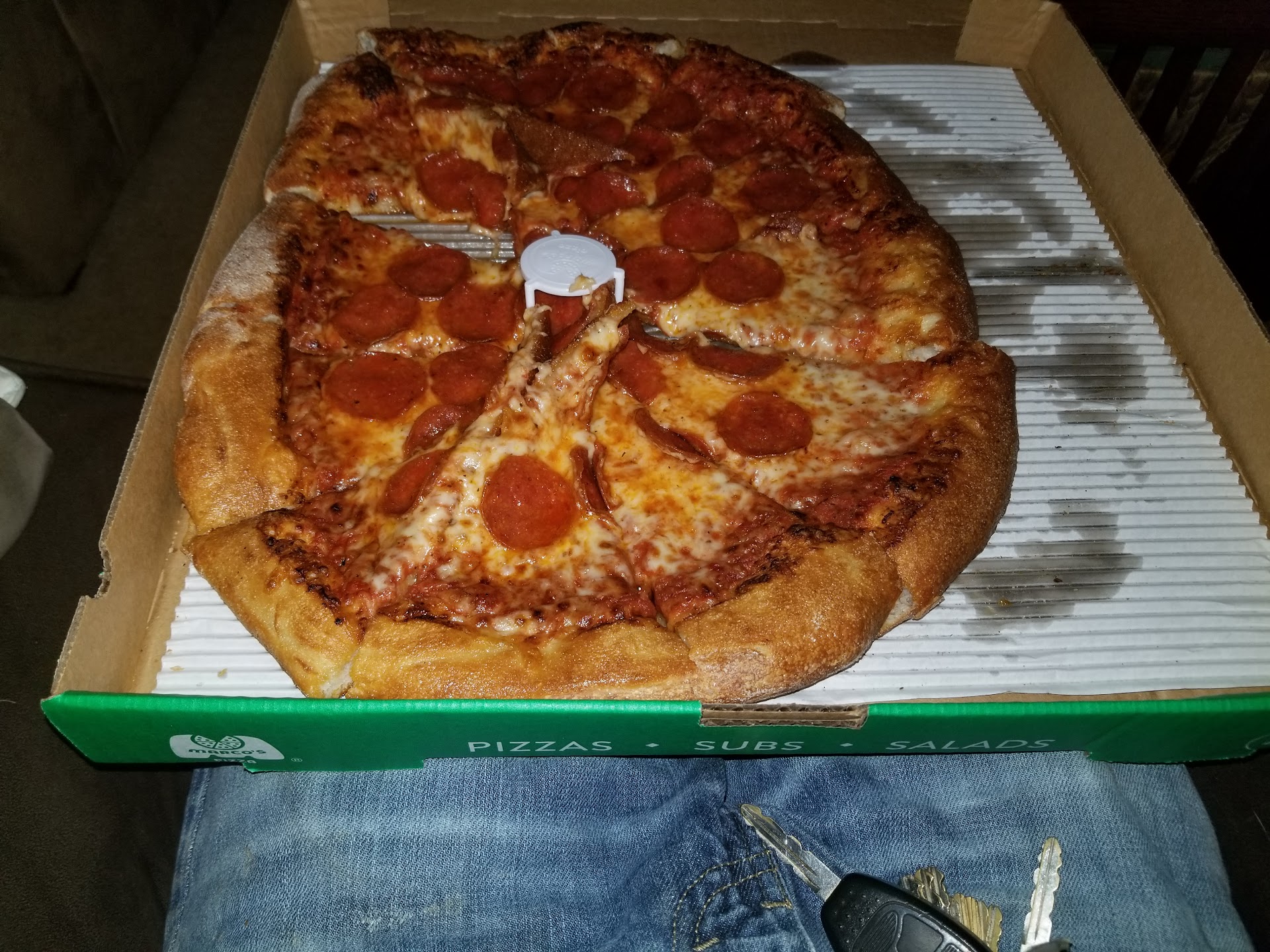 Read moreThis is truly our first time ordering pizza from Marcos. I ordered online 1 new york style pizza and 1 mountian dew. These products including the tip which ended up being $34.00. Curious as to why our pizza had not yet arrived we checked our bank account to see if payment had went through we noticed a payment of $44.00 and then a second charge $5.00 had been processed on our account and we only gave permission for 34.00 now at this point we contacted marcos to see about when our pizza would be arriving. It was then that it was brought to out attention that there was no order placed for our items. And we where requested to drive to the store to show them the charges which I happily obliged. Once at the store I showed them my account which by the way showed their store number and the charges on the account. After 45 minutes of waiting I was told that they would make me a regular sized pepperoni pizza which by the way I didnt order. Then I was told they didnt know about my money. Not impressed at all wasted nearly 3 hours on this. I should have drove across the street to Little Caesars. I could have enjoyed my time with my family and had more money...