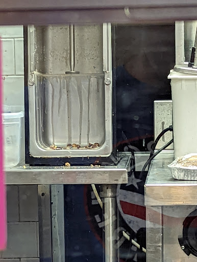 Read moreSo about 3 weeks ago I'd say, my wife goes in gets us both medium rocky road shakes, gets back to the car with them, we drive away drinking our shakes, about halfway home I crunch into an almond, a very strangely textured almond with a very similar flavor besides an almond.....pull it out of my mouth and I never would have guessed this would come out of my shake......a piece of charred hamburger meat...THAT was the familiar GREASY taste in the middle of my milkshake.